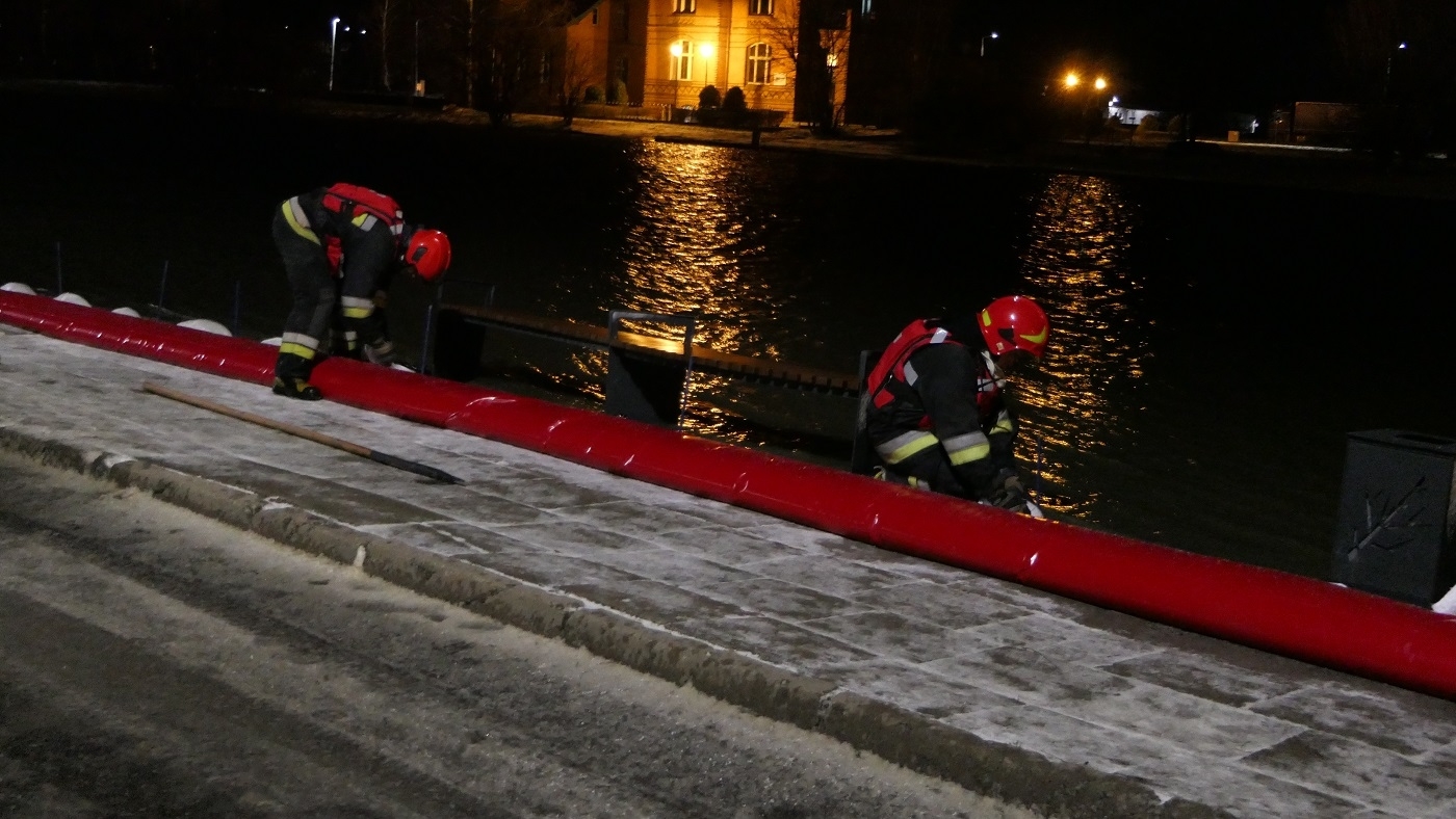 Straż Pożarna zabezpiecza teren Starego Miasta, od godziny 15.00 elbląscy strażacy układali rękawy przeciwpowodziowe oraz worki z piaskiem.