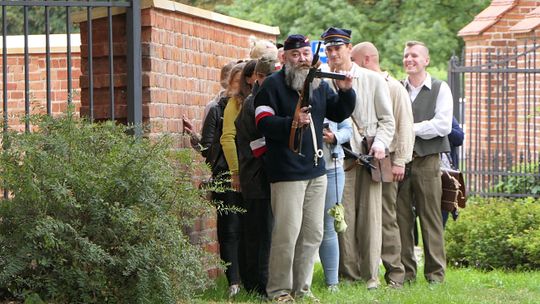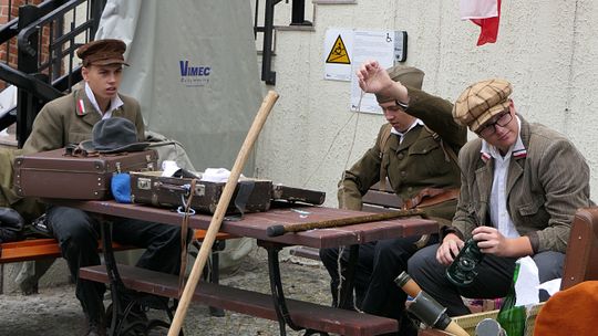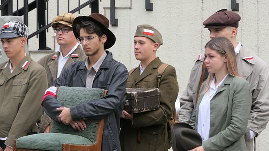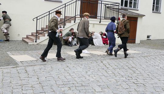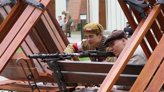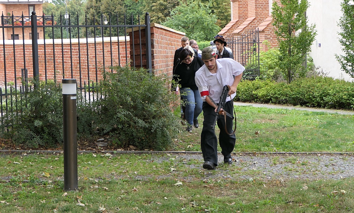 U wejścia na dziedziniec muzeum została rozstawiona barykada z dumnie powiewającą biało-czerwoną flagą jako symbol - punkt docelowy - naszej odtworzonej podczas inscenizacji ulicy ze Śródmieścia Warszawy.