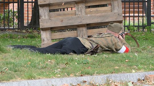 W związku z notorycznymi bombardowaniami Śródmieścia, warszawiacy większość dni spędzali na ulicy bojąc się przebywania w kamienicach, które stanowiły notoryczny cel ataków bombowych oraz okrutnej śmierci głodowej bez możliwości odgruzowania w piwnicach zawalonych budynków. Historycy w dużej ilości odkrywali ślady takiej śmierci na przykład listy, testamenty, napisy wyryte na ścianach i w cegle w trakcie odgruzowywania po II Wojnie Światowej. Zgodnie ze stanem faktycznym, odtworzona przez Międzyszkolne Koło Historyczne ulica warszawskiego Śródmieścia tętniła życiem