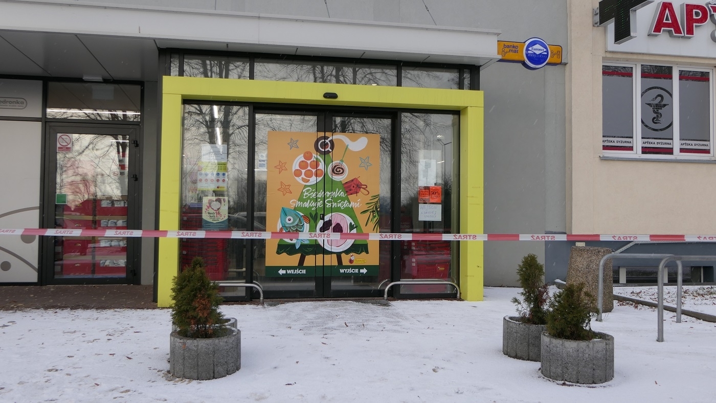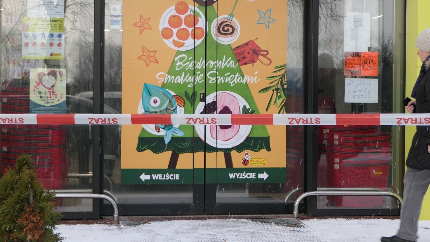 Główne wejście do Biedronki przy ulicy Królewieckiej zostało zamknięte, otwarte jest z drugiej strony.