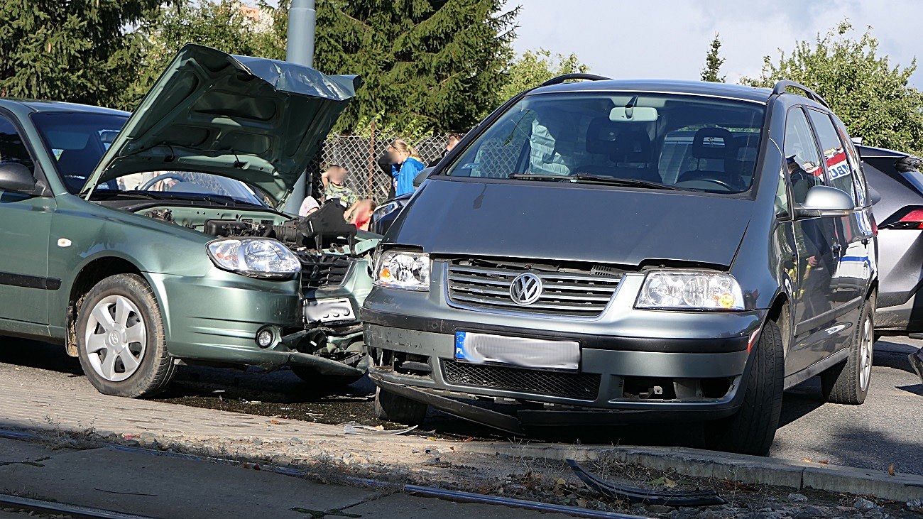 Jedna osoba została zabrana do szpitala na badania, policjanci zakończą zdarzenie mandatem karnym dla kierowcy vw.