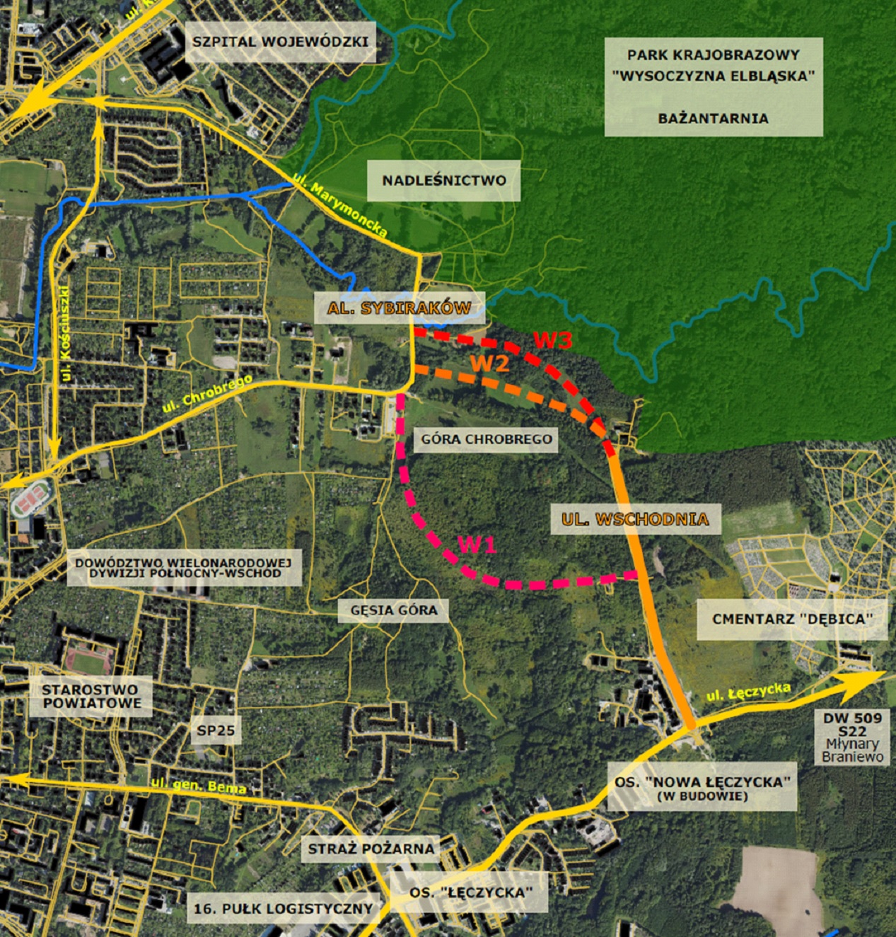 Przy projektowaniu drogi uwzględnione zostaną również uwagi i oczekiwania środowisk ekologicznych. Wykonawca dokumentacji ma przedstawić najbardziej optymalne rozwiązanie połączenia istniejącego odcinka ul. Wschodniej w obszarze zlokalizowanym pomiędzy Górą Chrobrego a rzeką Srebrny Potok i granicą Parku Krajobrazowego Wysoczyzny Elbląskiej.