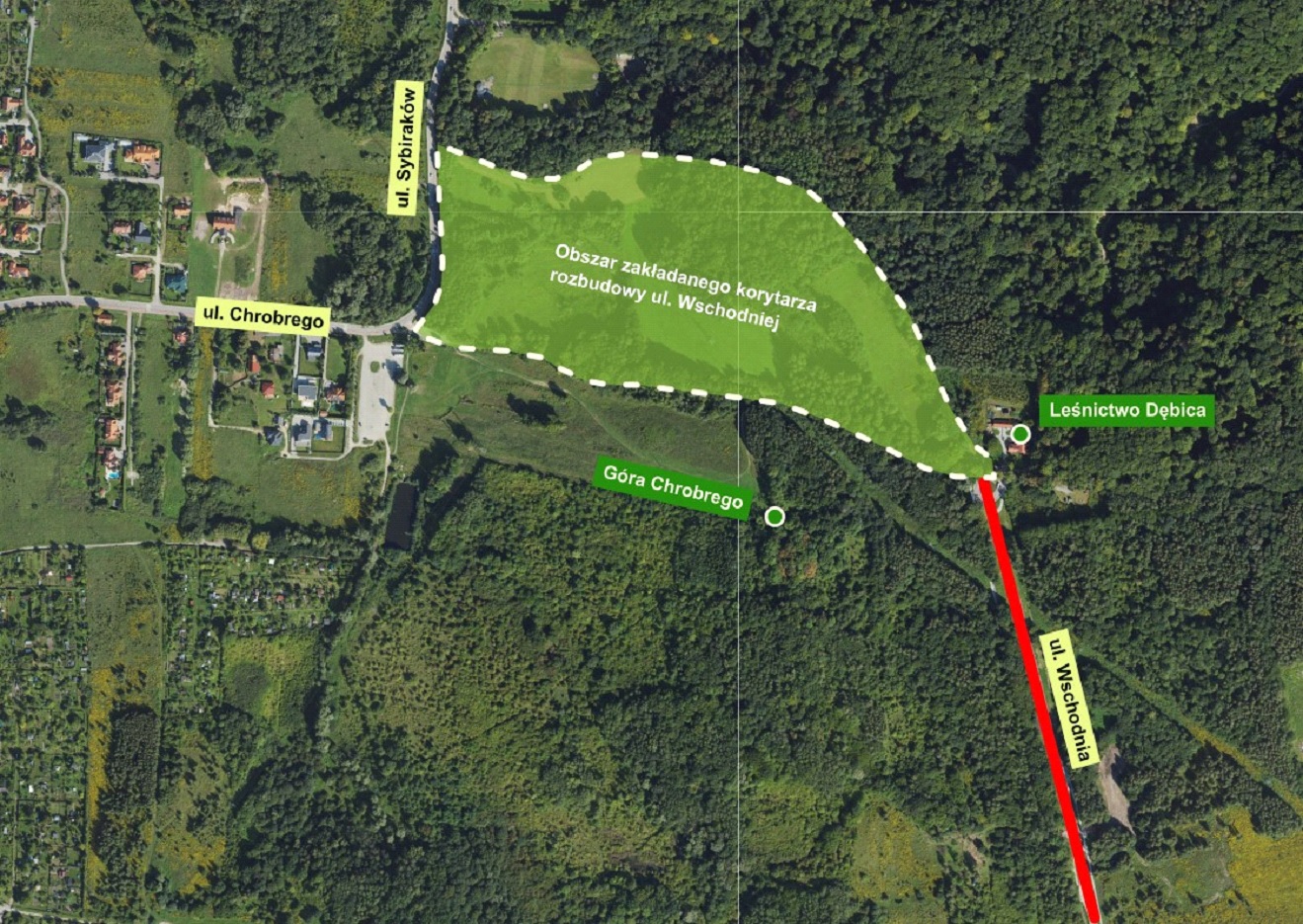 Największa grupa uczestników konsultacji, w oparciu o kwestie bezpieczeństwa, zachowania walorów przyrodniczych, celowości wykorzystania istniejącej infrastruktury drogowej, kosztów realizacji i terminu realizacji zadania zarekomendowała – jako najbardziej racjonalne rozwiązanie – wybudowanie nowego połączenia w obszarze od końca wykonanej w 2023 r. ul. Wschodniej przy Leśnictwie Dębica do połączenia z ul. Sybiraków, czyli między proponowanymi w konsultacjach wariantami W2 a W3. Rozwiązanie to pozwala w pełni wykorzystać wybudowany odcinek ul. Wschodniej oraz nie ingeruje w Gęsią Górą i Górą Chrobrego. Zgodnie z szacunkowymi kosztorysami jest też dużo bardziej racjonalny ekonomicznie niż wariant W1. Mając na względzie wolę większości mieszkanek i mieszkańców oraz przedstawicieli różnych grup społecznych obszar ten został wskazany do zaprojektowania nowego połączenia drogowego.