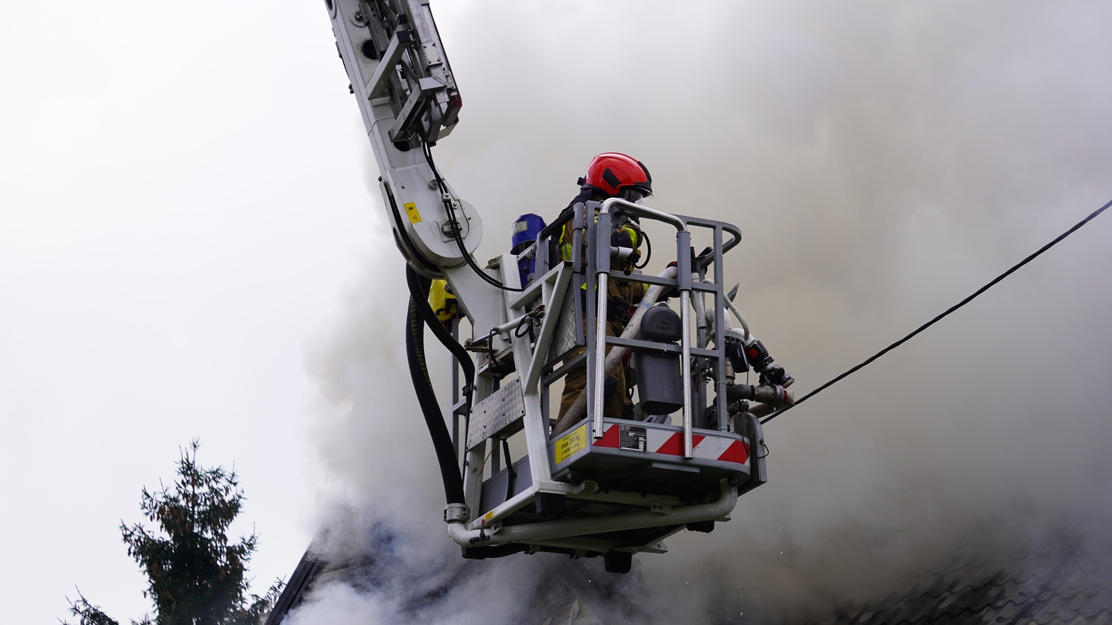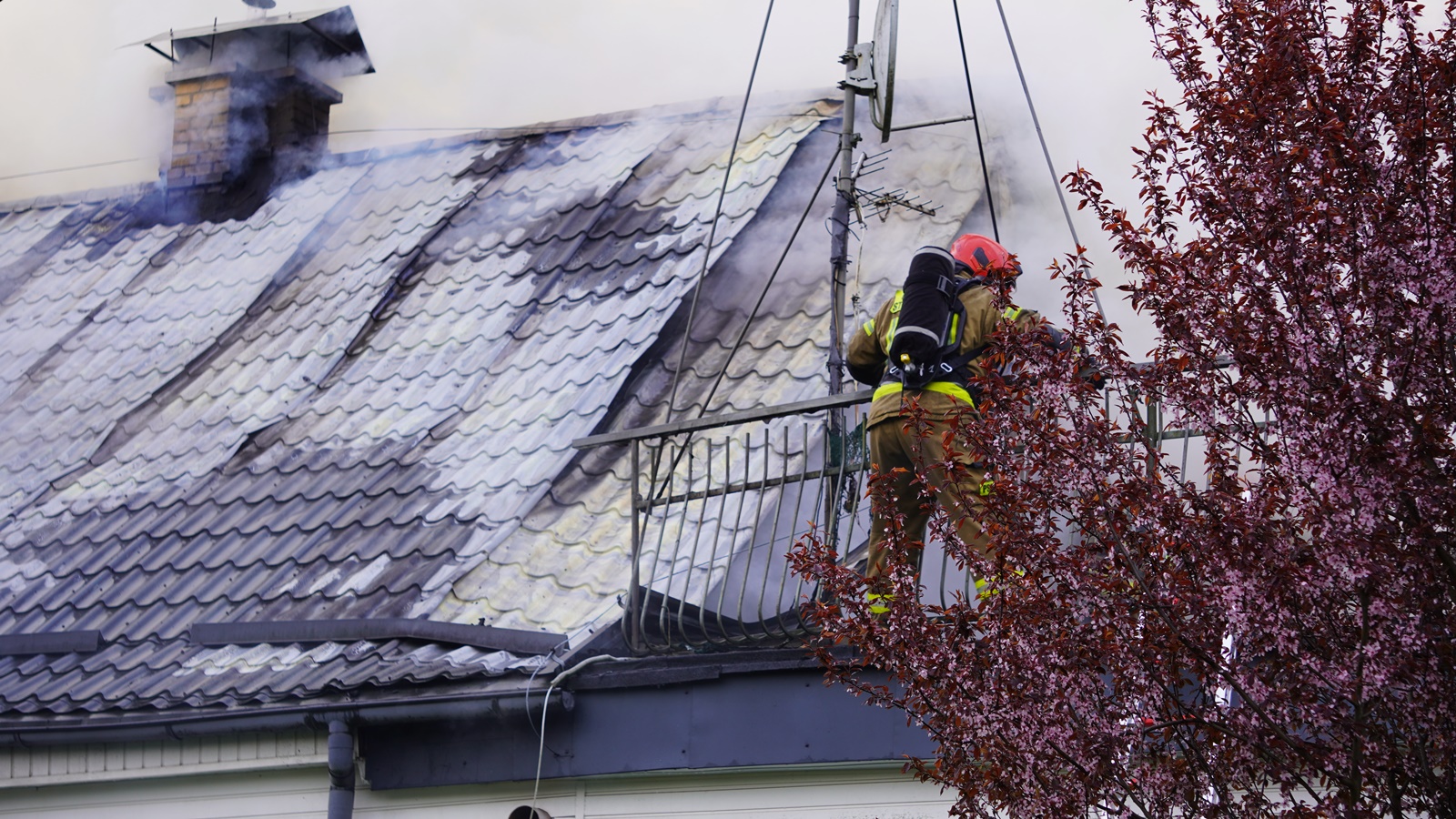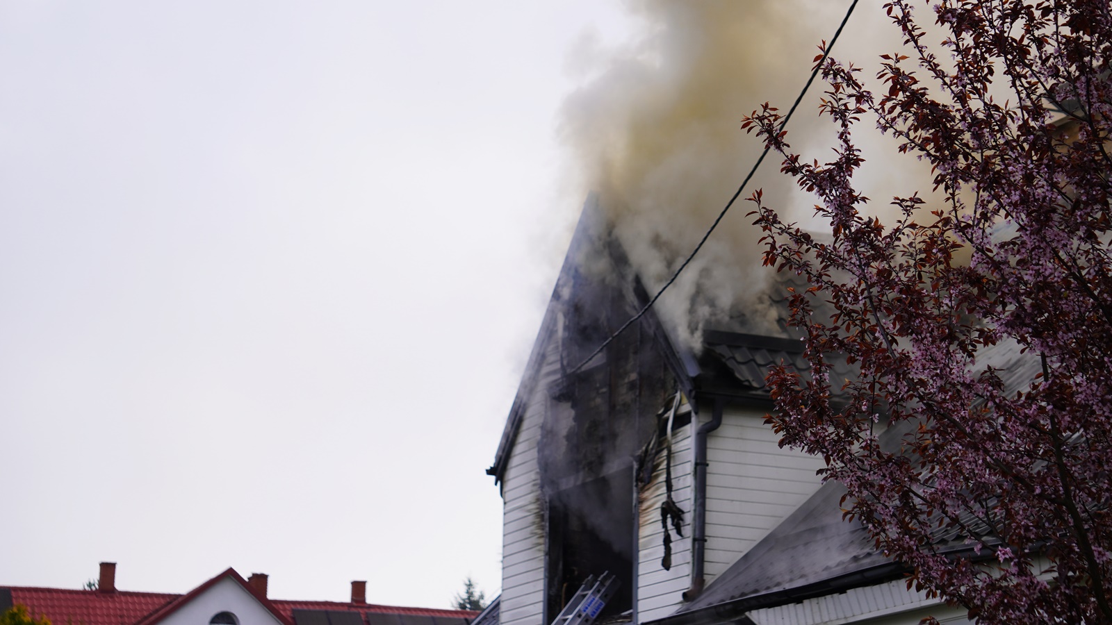 "Po przybyciu na miejsce zostano pożar w pełni rozwinięty na poddaszu budynku. Doszło tam do wybuchu niewiadomego pochodzenia. Ratownicy podczas działań znaleźli w budynku dwie butle gazowe, które zostały zabezpieczone i schłodzone w pobliskim stawie"