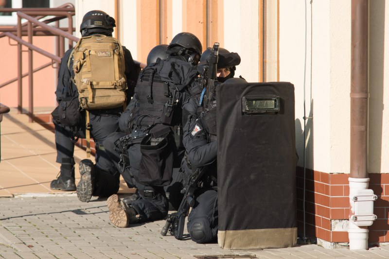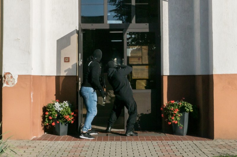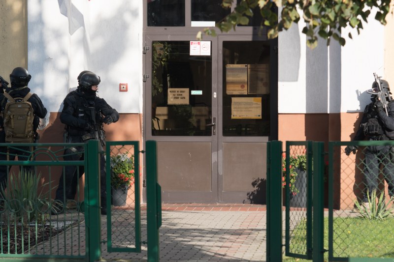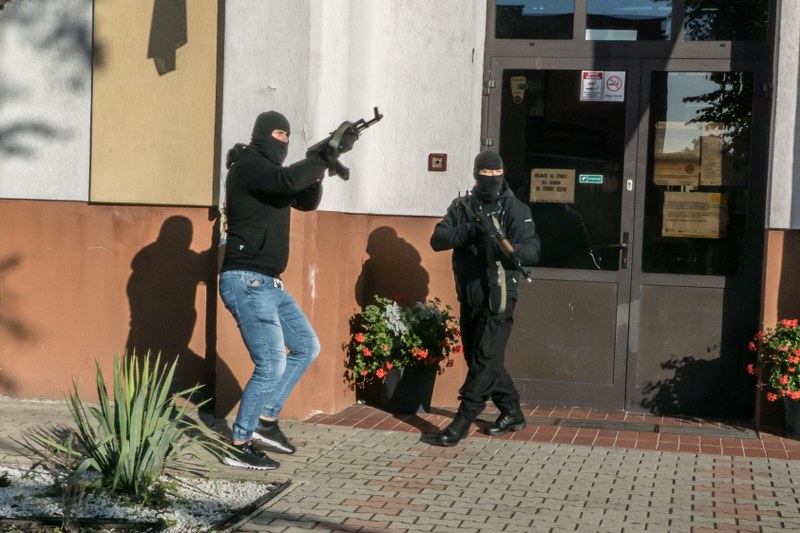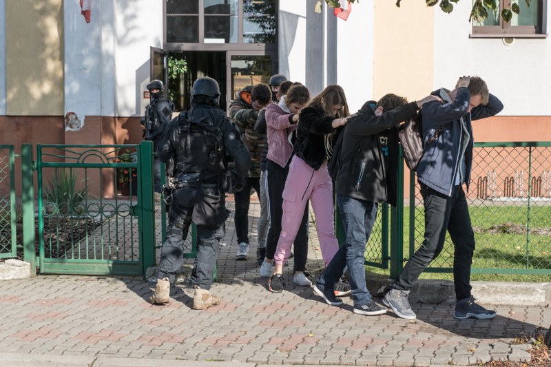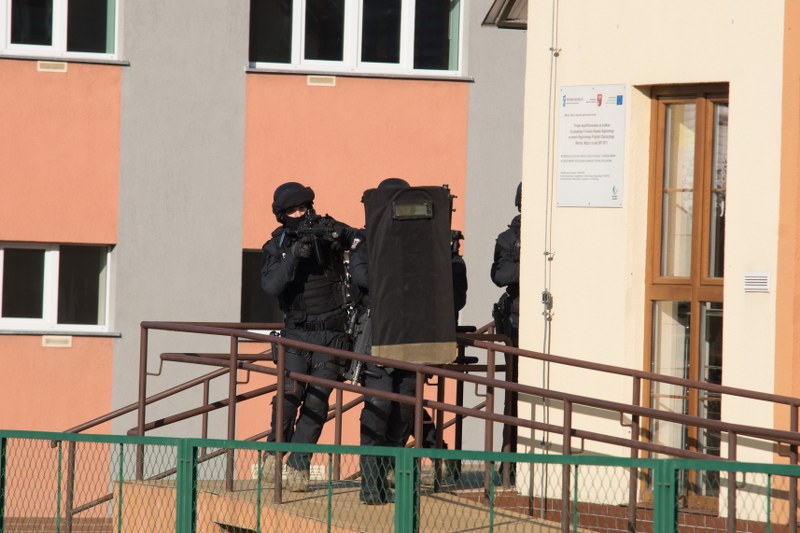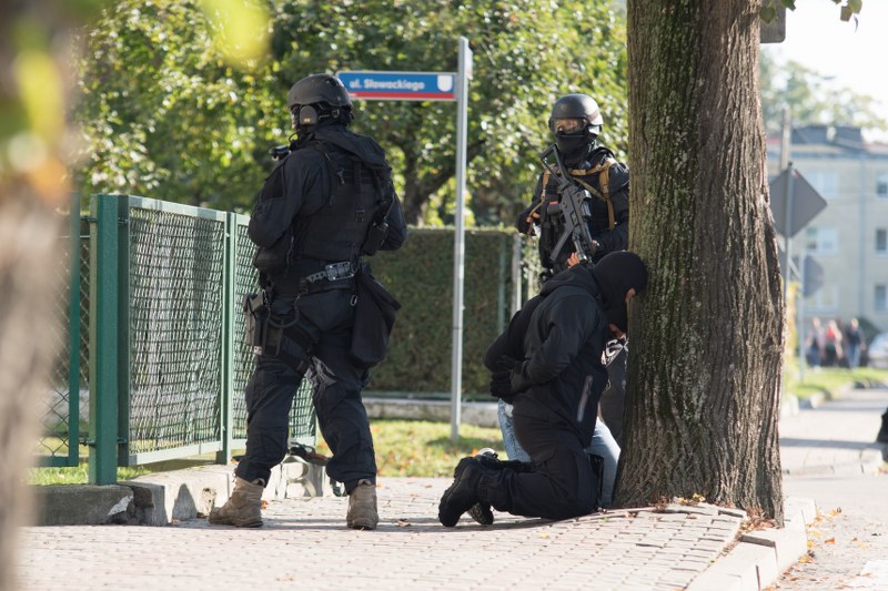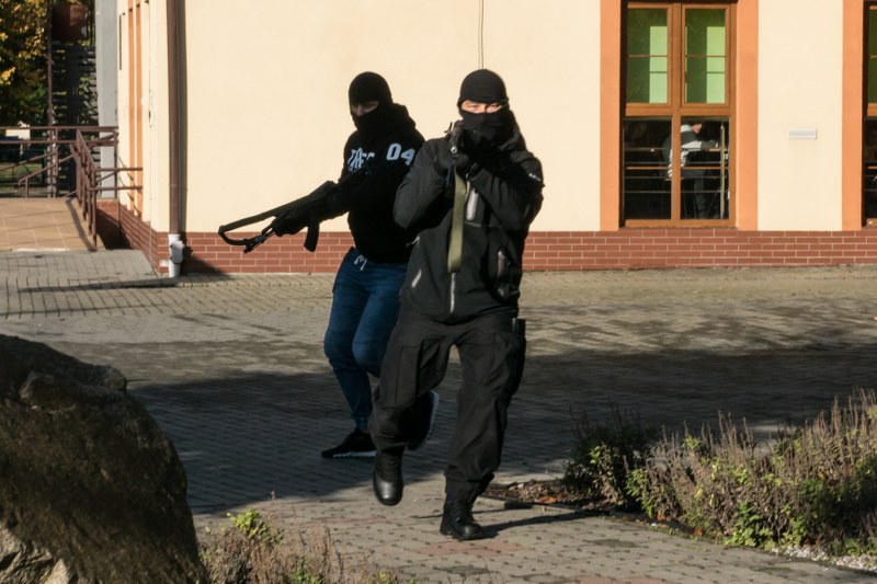 Do szkoły w Pasłęku weszło dwóch uzbrojonych mężczyzn i zaczęło strzelać. Na miejscu pojawiły się wszystkie służby, w tym antyterroryści z Gdańska. Zakładników uwolniono, a sprawców zatrzymano. Na szczęście były to tylko ćwiczenia.