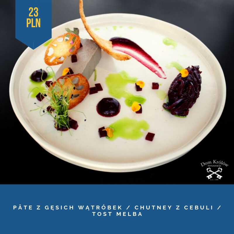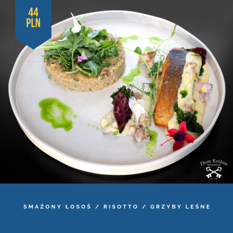Nie czekając na werdykt możemy już teraz spróbować dań z jesiennej karty sezonowej. Sezonowy zestaw rozpoczyna przystawka - pate z gęsiny. Delikatny, kremowy pasztet z gęsiej wątróbki podany jest z galaretką z czarnej porzeczki oraz gęstym sosem chutney z czerwonej cebuli, z dodatkiem cynamonu, kardamonu i śliwki, w towarzystwie chrupiącego tostu Melba (23 zł). Po przystawce czas na zupę. Dla smakoszy owoców morza szef kuchni przygotował wyjątkowy bulion rybny z włoszczyzną, w towarzystwie ośmiorniczki, krewetek i muli (19 zł). Główne danie to solidna porcja smażonego łososia, podanego z risotto z dodatkiem leśnych grzybów i sosu śmietanowo – kurkowego (44 zł). A na deser czeka przepyszne ciasto brownie z płynną czekoladą i śliwkami na wierzchu, postawione na musie winno-śliwkowym. Dla przełamania słodkiego smaku, dodatkiem do deseru jest sorbet mango-marakuja (16 zł). Co za pyszności! Nie zwlekaj i skuś się na niezwykłe smaki restauracji Dom Królów.