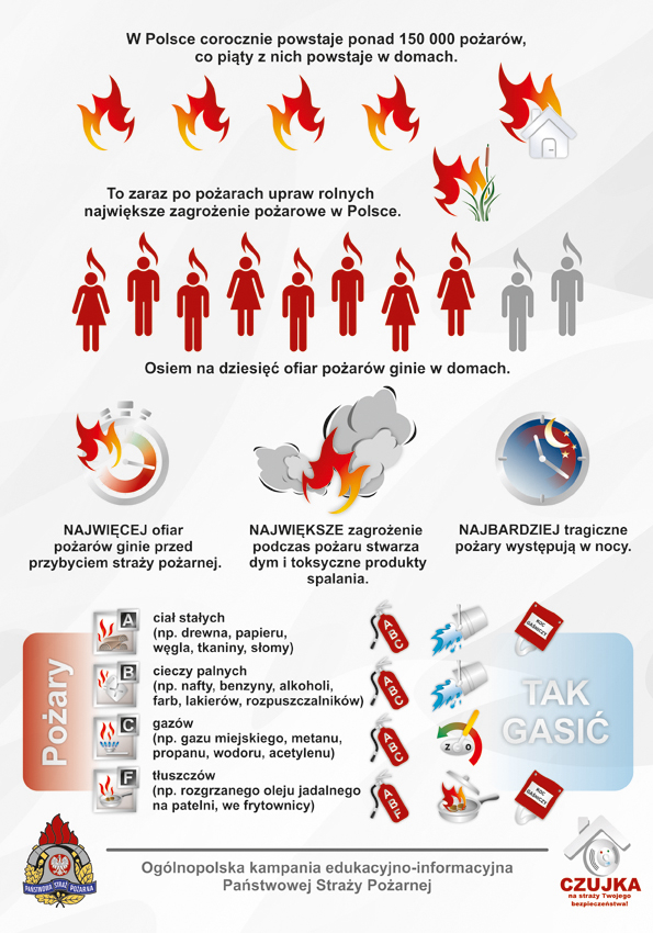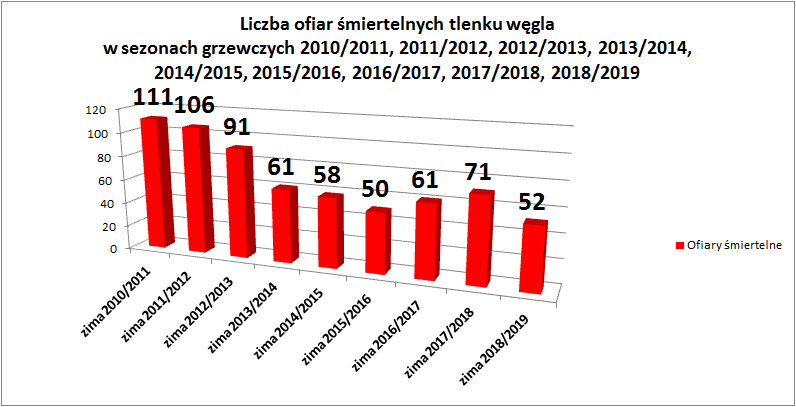 Sezon grzewczy 2019-2020 W okresie jesienno-zimowym, w naszym kraju w mieszkaniach i domach jednorodzinnych wzrasta ryzyko powstania pożarów. Najczęściej dochodzi do nich w wyniku wad, albo niewłaściwej eksploatacji urządzeń grzewczych, elektrycznych i gazowych. W tym samym okresie odnotowywany jest także wzrost liczby zatruć tlenkiem węgla, zwanym "cichym zabójcą", gdyż jest niewidoczny oraz nie ma smaku, ani zapachu. Kampania jest skierowana do społeczeństwa, m.in. do dzieci i młodzieży oraz do seniorów.