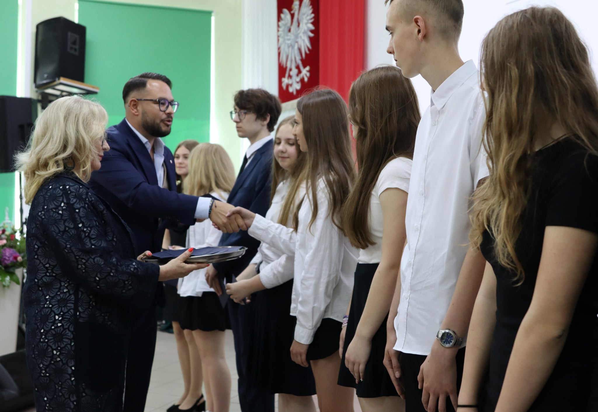 Dyrektor szkoły tradycyjnie rozpoczął ceremonię od podziękowań dla grona pedagogicznego i pracowników administracji – bez ich codziennego zaangażowania ten rok nie byłby tak udany.
