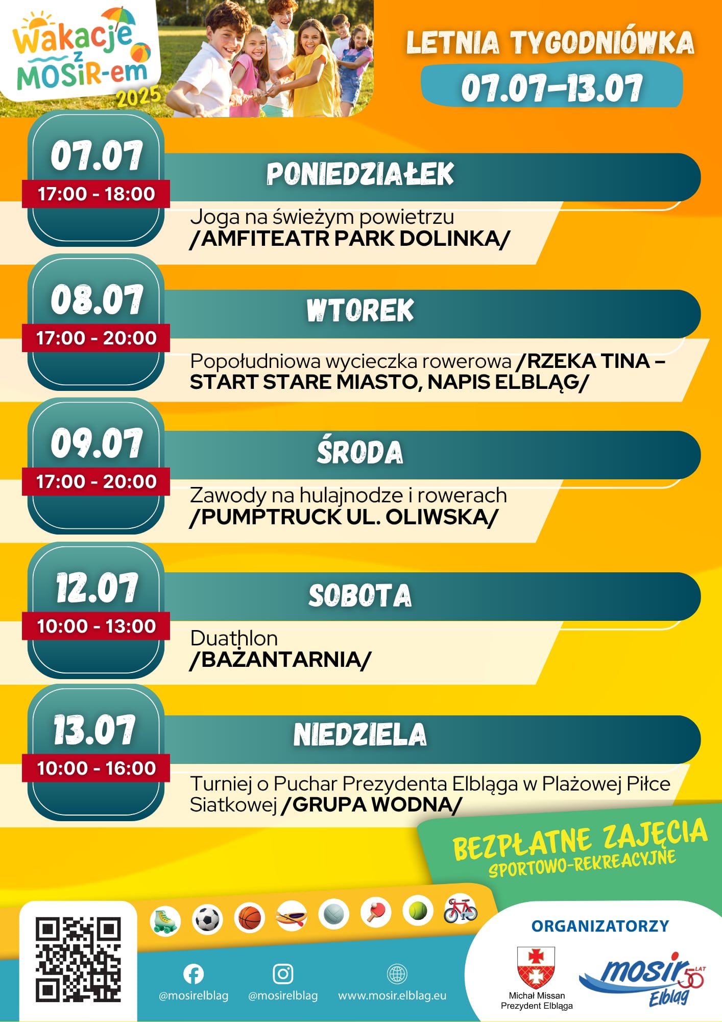 Pełny harmonogram Wakacji z MOSiR-em znajdziesz na stronie mosir.elblag.eu.
