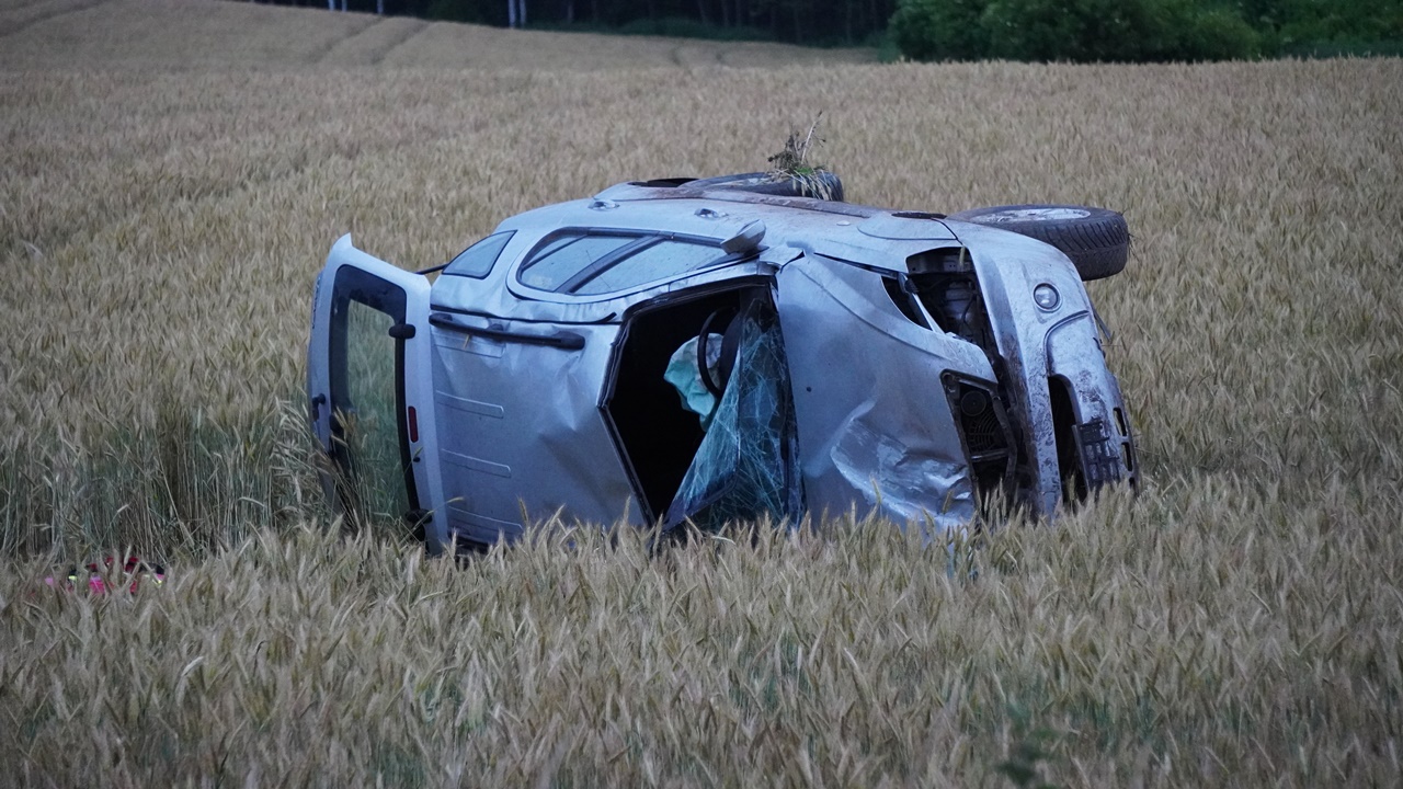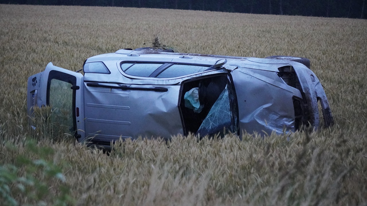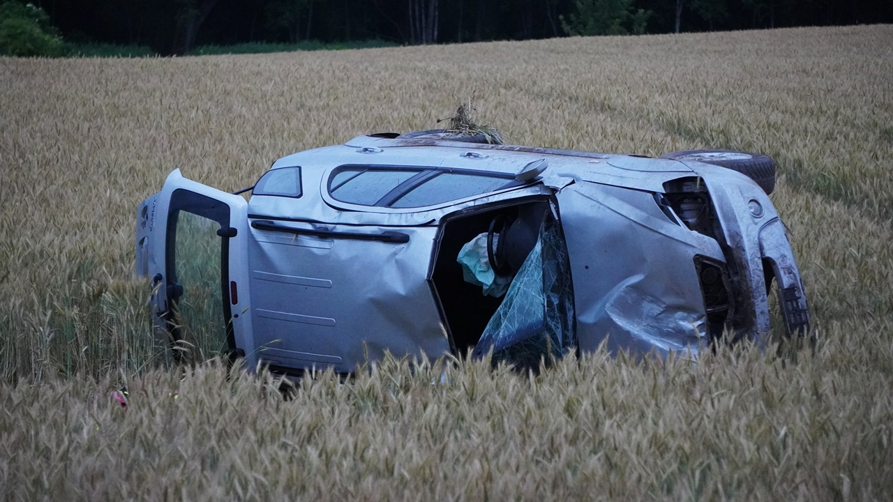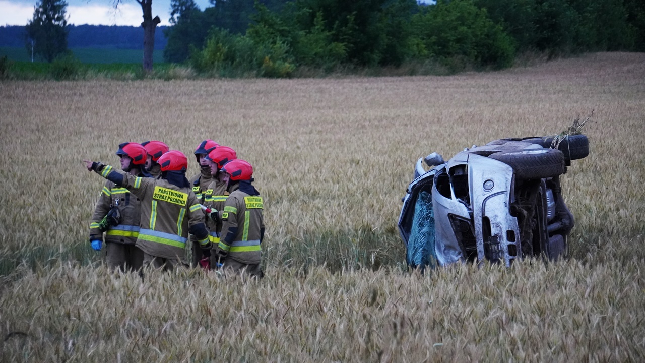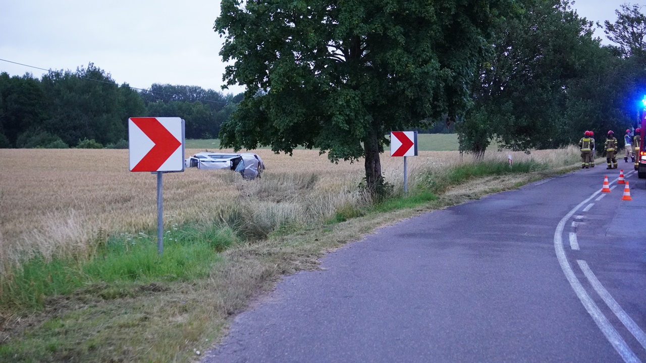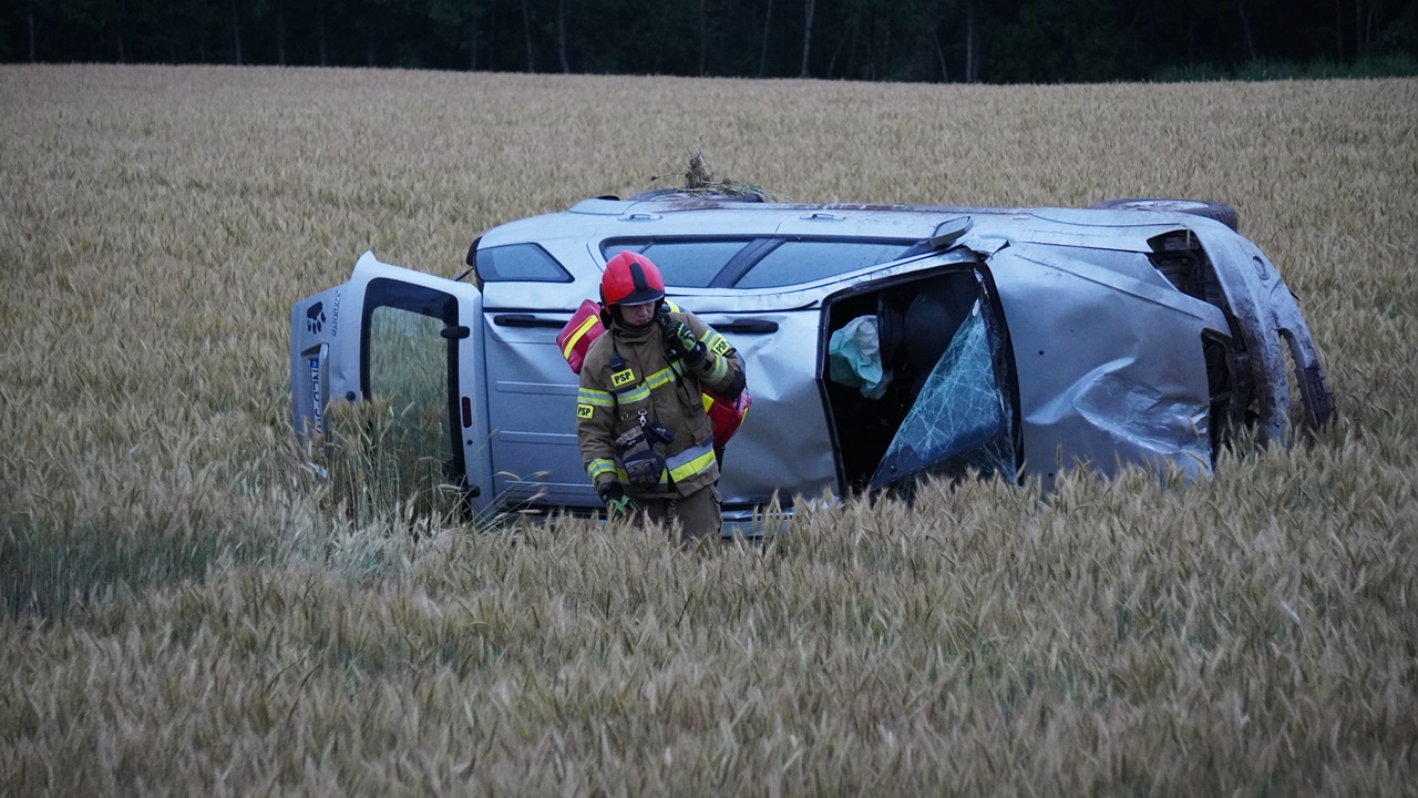 Mężczyzna, jadąc KIĄ drogą wojewódzką nr 509 stracił panowanie nad samochodem - w wyniku czego pojazd wypadł z drogi i dachował.