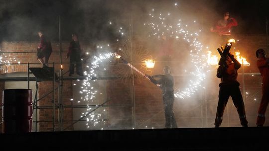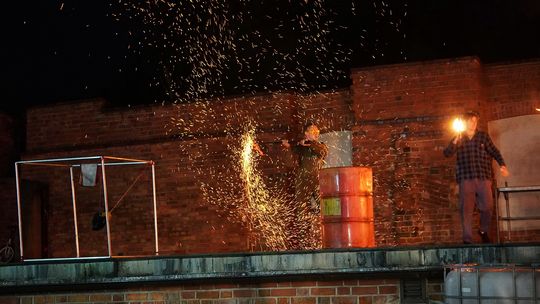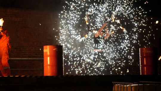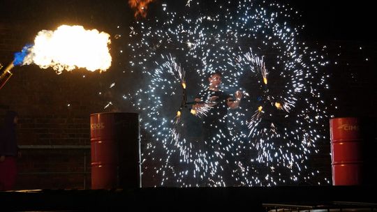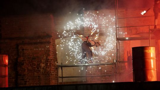 Spektakl Ognia to wielki finał festiwalu Enklawa. W tym roku ogień stał się częścią historii „Fabryki Wielkich Wybuchów" – spektaklu tworzonego przez cały Festiwal przez jego artystów.