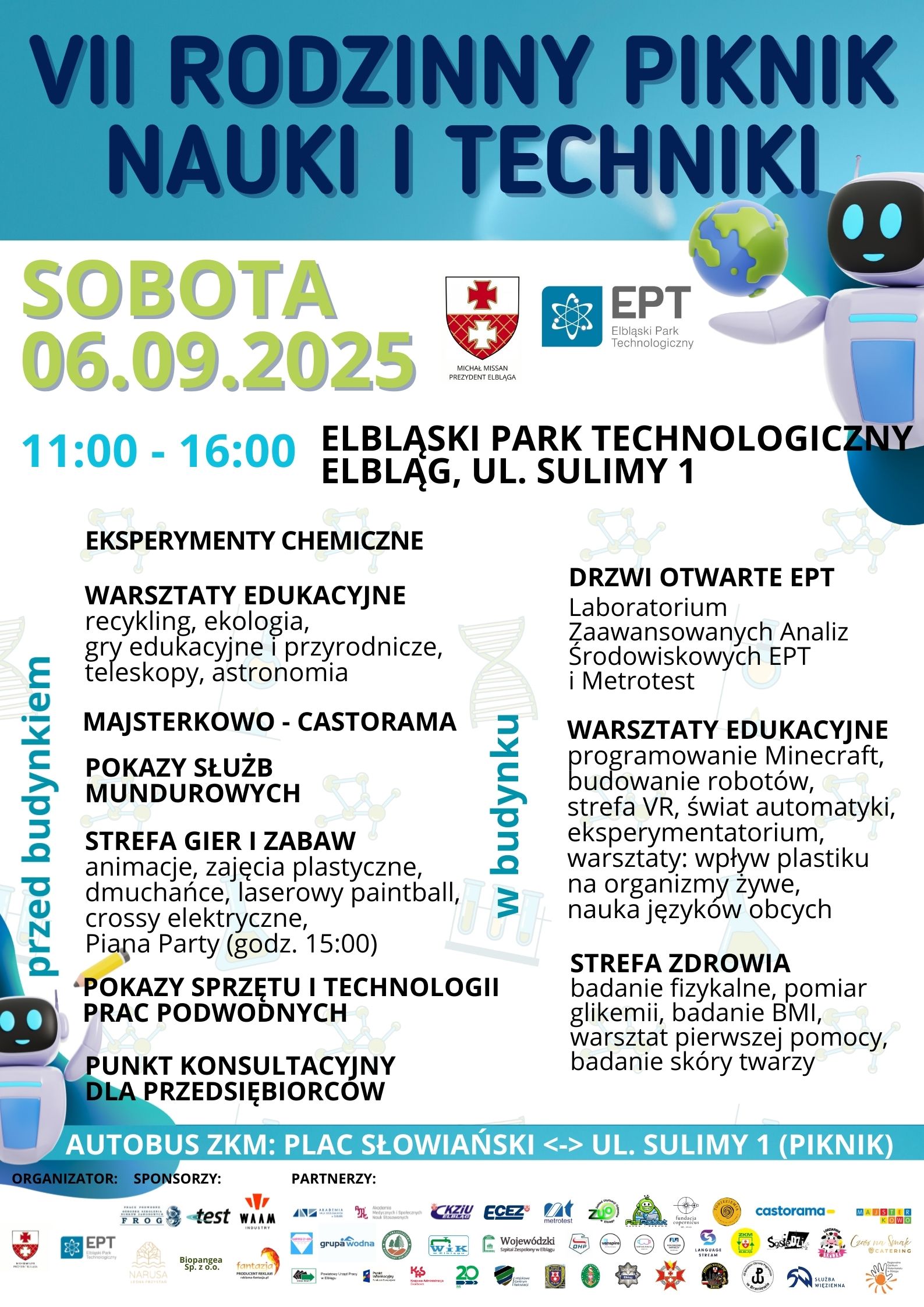 Między godziną 11:00 a 16:00 teren EPT (Elbląg, ul. Sulimy 1) wypełni się interaktywnymi stanowiskami, doświadczeniami i atrakcjami, które sprawią, że każdy, od najmłodszych odkrywców po dorosłych pasjonatów, znajdzie coś dla siebie.