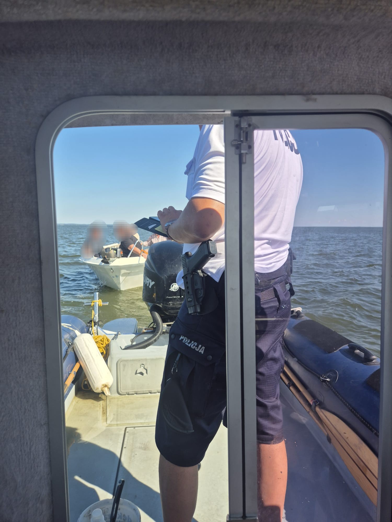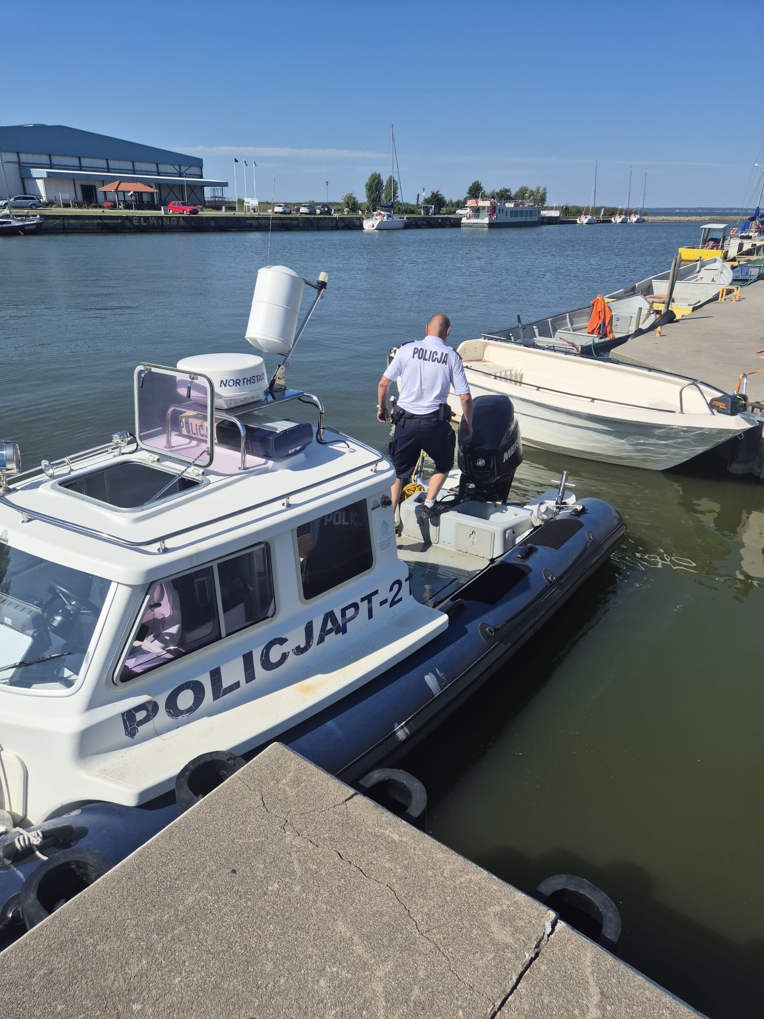 W łodzi były cztery osoby i miały awarię silnika. Łódź odholowano do Portu Tolkmicko. Sprawdzono wyposażenie łodzi: brak jakichkolwiek środków ratunkowych oraz obowiązkowego wyposażenia.