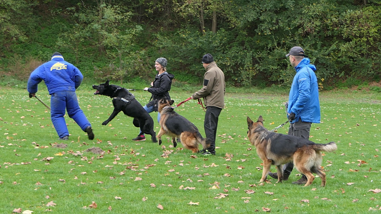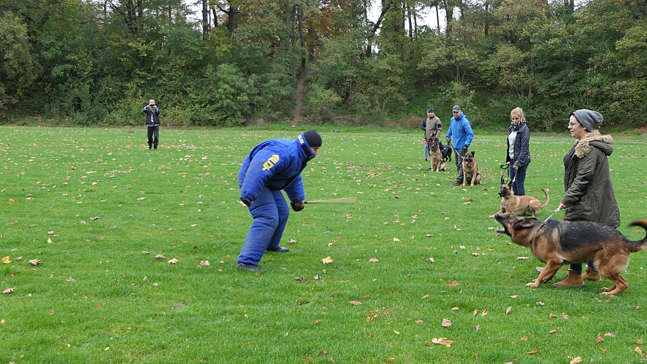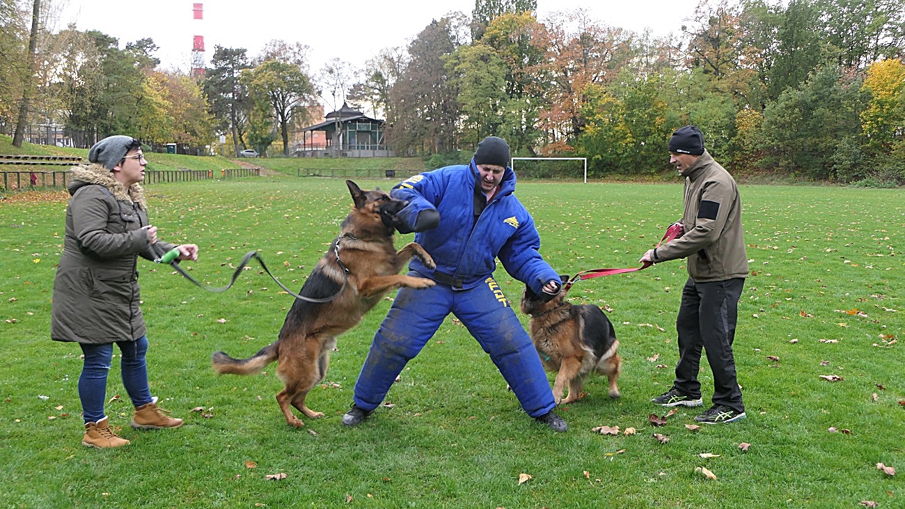 - "Szkolenie polega na wzmocnieniu instynktów obronnych oraz wyrobienie odwagi psów. Zajęcia są dodatkiem do pełnego szkolenia z zakresu obrony przewodnika. Każdy z uczestników wraz ze swoim podopiecznym przeszedł etap szkoleniowy z zakresu obrony przewodnika, a dzisiejsze spotkanie jest jego kontynuacją, tym razem w grupie, bowiem całe szkolenie jest robione indywidualnie"