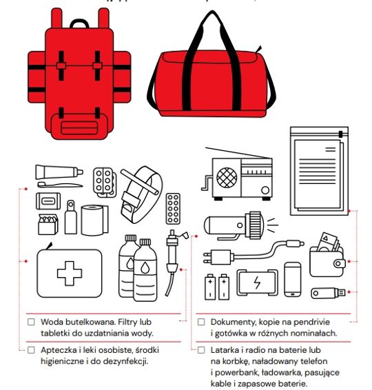 Przygotowany plecak z najważniejszymi rzeczami, który momentalnie można zabrać, opuszczając dom, nie jest zestawem wyłącznie na wypadek ataku zbrojnego. Przyda się np. podczas klęsk żywiołowych – w każdej sytuacji, w której trzeba się ewakuować.