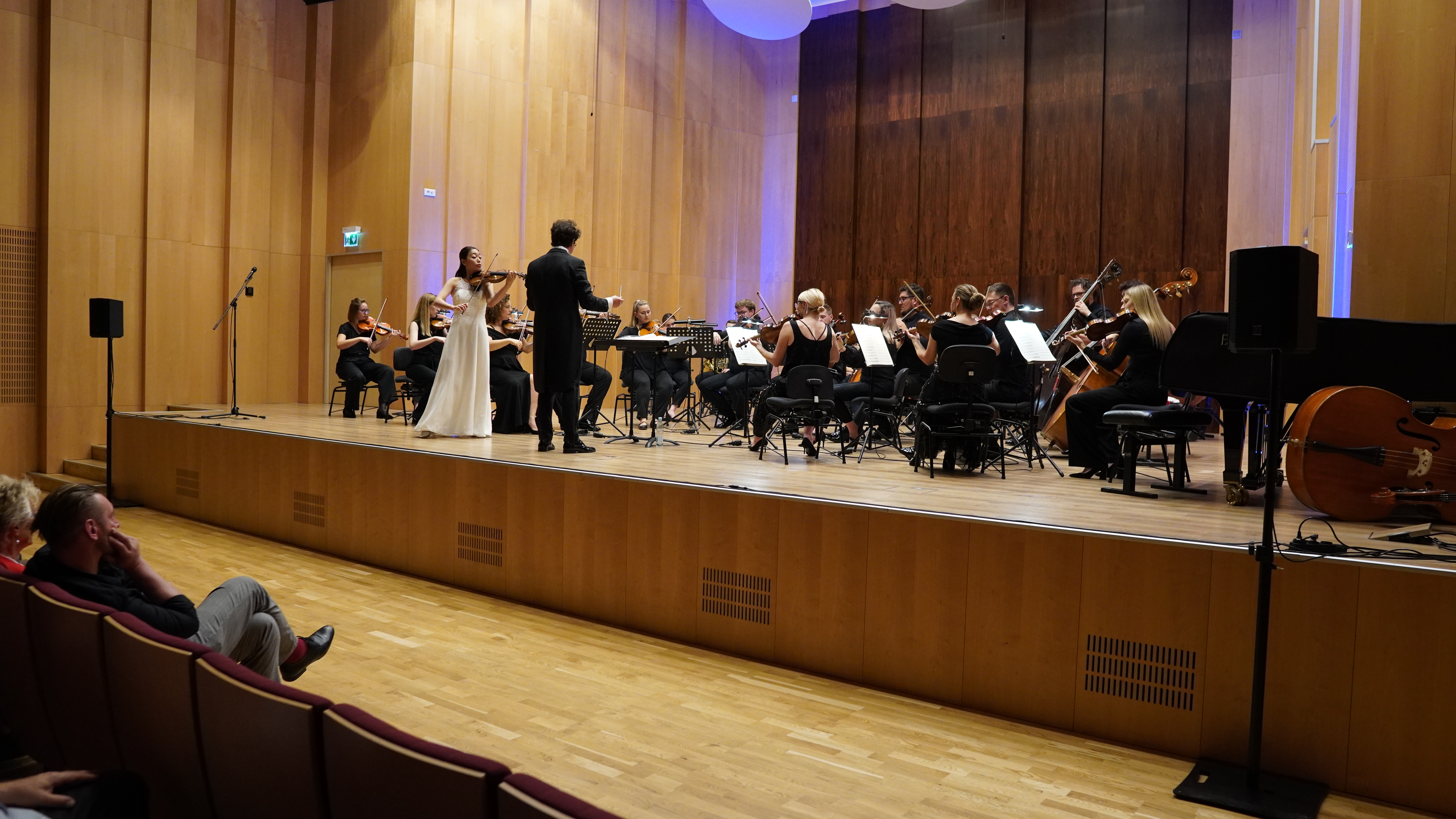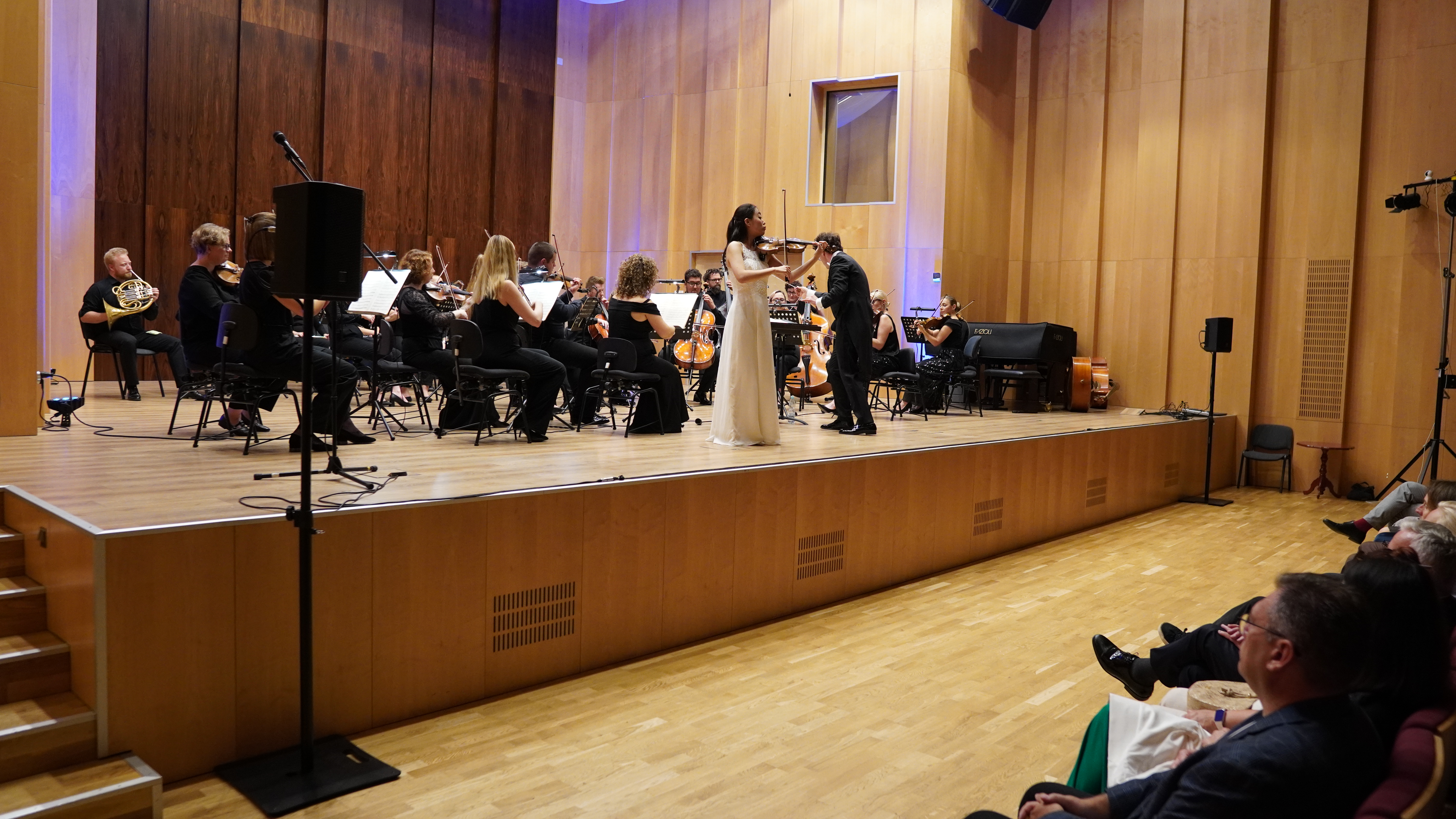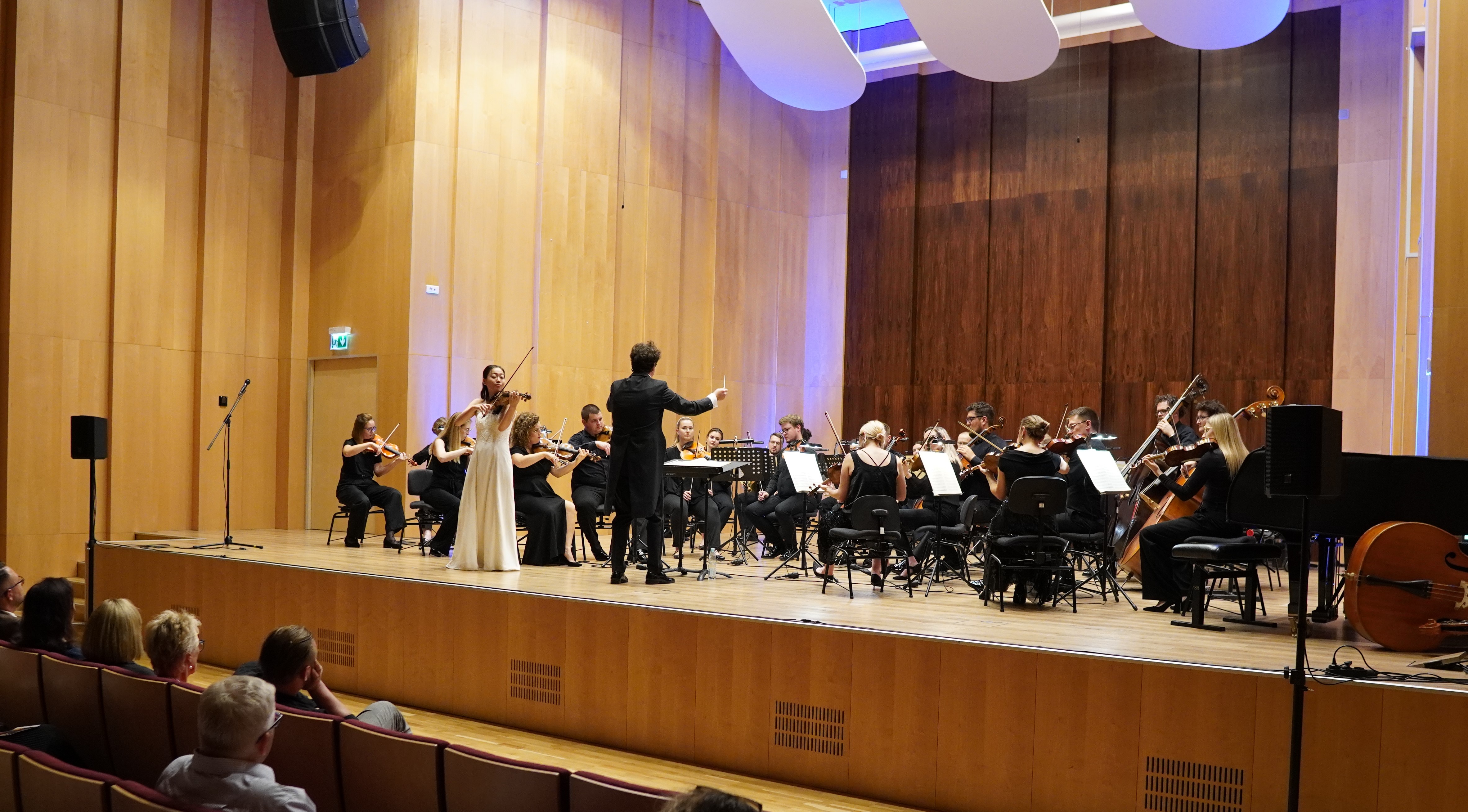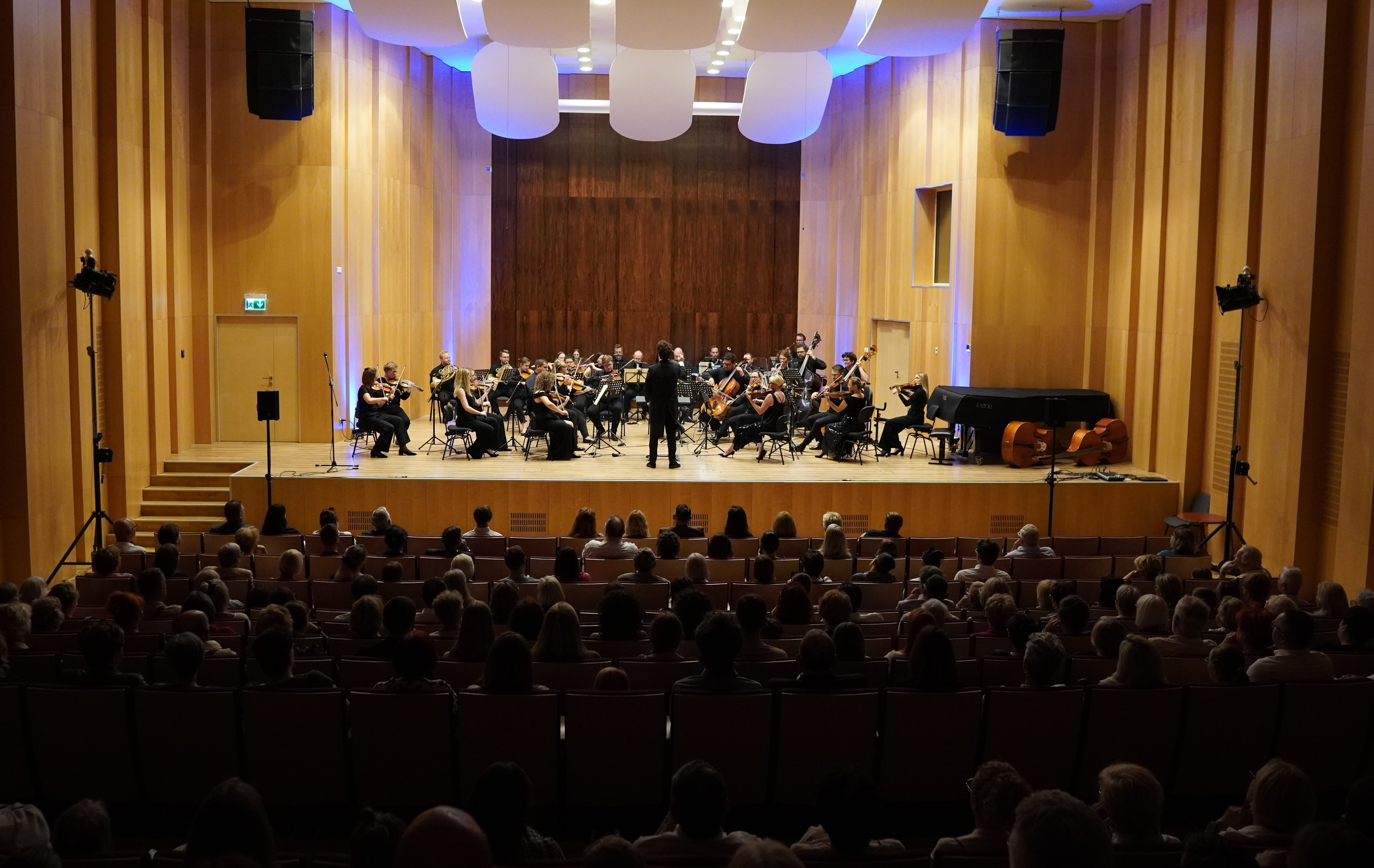 Elbląska Orkiestra Kameralna pod batutą Sergeya Simakova zaprezentowała program pełen energii i elegancji, a wyjątkowym momentem wieczoru był występ skrzypaczki Wonbeen Chung – solistki, która oczarowała publiczność swoją wrażliwością i błyskotliwą techniką. Jej interpretacja spotkała się z ogromnym entuzjazmem i długimi brawami.
