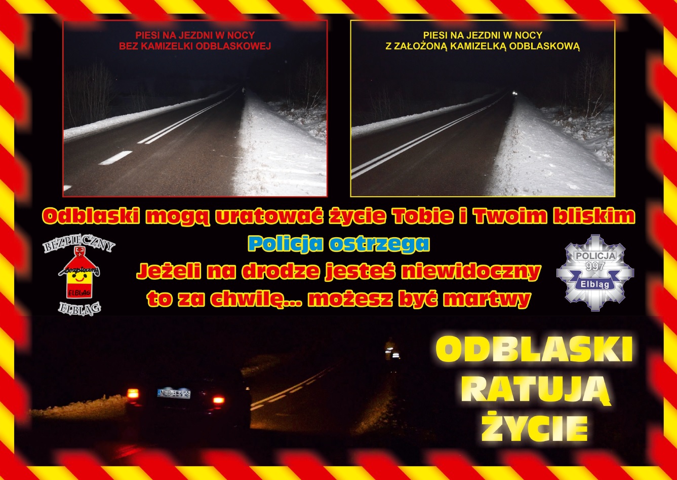 - W przepisach przewidziano wyjątek: pieszy może poruszać się po zmierzchu poza obszarem zabudowanym bez elementów odblaskowych, jeżeli znajduje się na drodze przeznaczonej wyłącznie dla pieszych lub na chodniku – tłumaczy kom. Tomasz Krawcewicz naczelnik Wydziału Ruchu Drogowego KMP w Elblągu. - Elementami odblaskowymi mogą być przedmioty doczepiane do ubrania, opaski, kamizelki lub smycze.