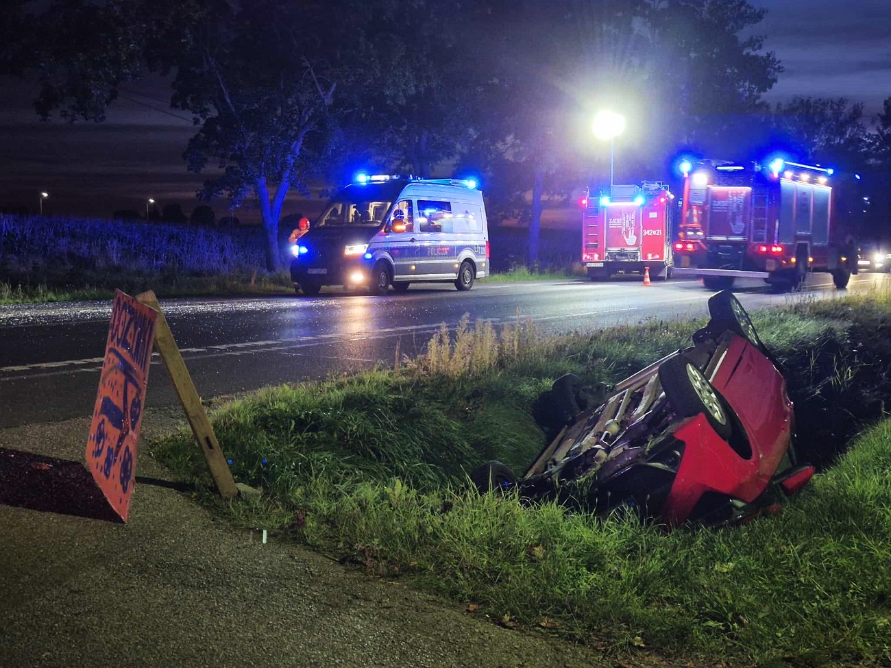 Na miejsce zdarzenia przyjechała policja, straż pożarna oraz zespół ratownictwa medycznego.