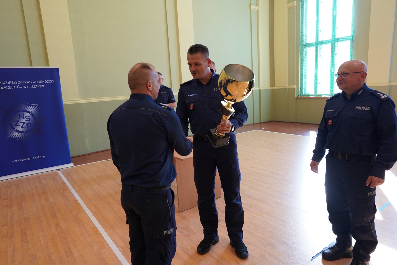 Zwycięzcy otrzymali z rąk insp. Radosława Dracha Zastępcy Komendanta Wojewódzkiego Policji w Olsztynie nagrody finansowe Komendanta Wojewódzkiego Policji w Olsztynie oraz puchary ufundowane przez Warmińsko-Mazurski Związek Zawodowy NSZZ Policjantów w Olsztynie. Zwracając się do uczestników zawodów insp. Radosław Drach podziękował za udział w turnieju i pogratulował policjantom, którzy zostali jego laureatami. Słowa uznania do uczestników skierował również mł. insp. Sławomir Koniuszy – Przewodniczący Warmińsko-Mazurskiego Związku Zawodowego NSZZ Policjantów w Olsztynie.