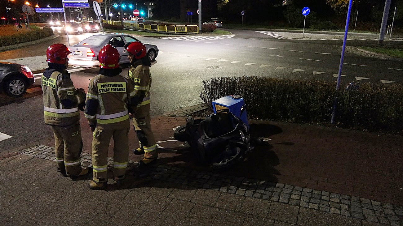 Z ustaleń drogówki wynika, że 27-letnia kierująca pojazdem osobowym nie ustąpiła pierwszeństwa 19-letniemu mężczyźnie, który jechał skuterem ulicą Grobla Świętego Jerzego od Urzędu Miasta.