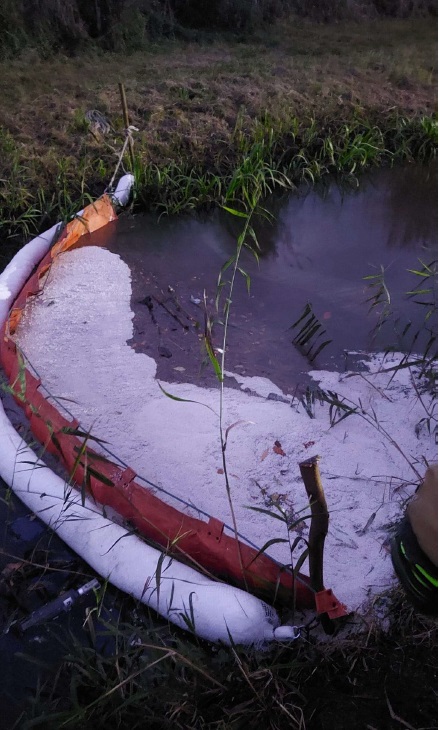 "Ruszyliśmy szukać źródła. Byliśmy w miejscu ujścia Kumieli do rzeki Elbląg gdzie Straż Pożarna zatrzymała zanieczyszczenia. W okolicy ujścia nurt Kumieli był na tyle spokojny, że wystarczyły trzy zapory elastyczne w tym dwie połączone z rękawem sorpcyjnym zbierające zanieczyszczenia z powierzchni wody za pomocą środka sorbent duck. Sprawdziliśmy pobliskie stacje paliw jak na razie bez wykrycia sprawcy"