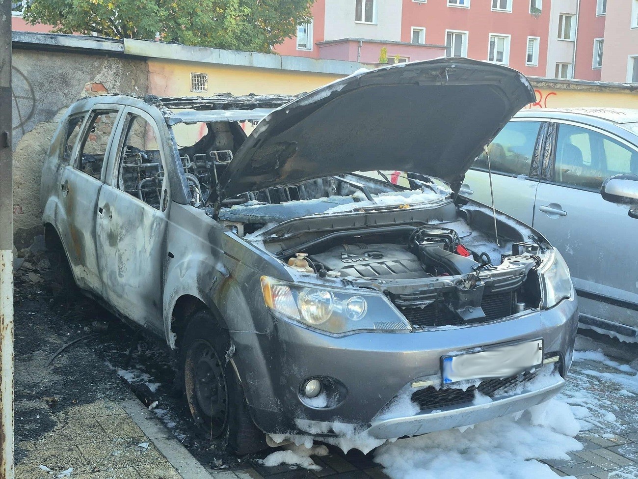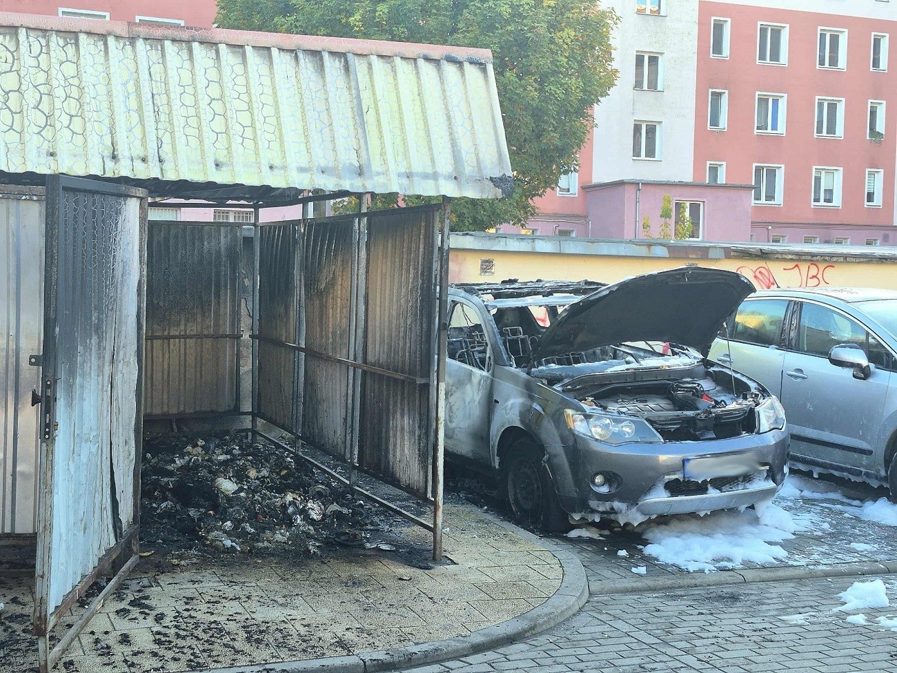 Strażacy z Komendy Miejskiej Państwowej Straży Pożarnej w Elblągu na miejscu zastali w pełni rozwinięty pożar wiaty oraz pojazdu marki Mitsubishi Outlander. Nadpalone również były elementy drugiego pojazdu marki Peugeot.