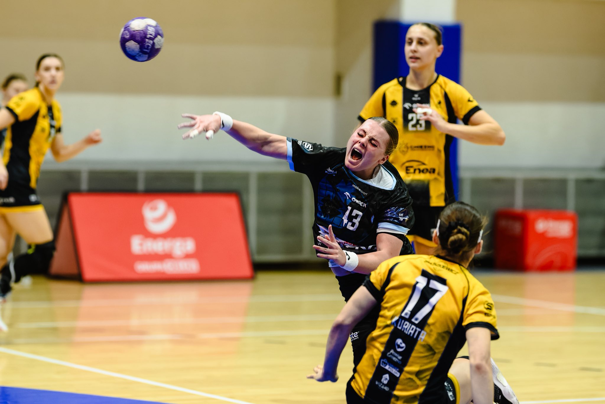 Pierwsze minuty meczu przyniosły sporo emocji i wyrównanej walki. Wynik spotkania otworzyła Polina Masalova, a chwilę później odpowiedziała Nikola Szczepanik. W czwartej minucie, po trafieniu Wiktorii Tarczyluk, gospodynie objęły prowadzenie 3:2. Obie drużyny dobrze pracowały w defensywie, gnieźnianki przez kolejne cztery minuty nie potrafiły pokonać elbląskiej bramkarki, a gospodynie także miały problem z wykończeniem akcji. W tym fragmencie gry kilka razy w świetnym stylu interweniowała Oliwia Suliga, zatrzymując rywalki w sytuacjach sam na sam. Jej skuteczne parady nie zostały jednak przełożone na bramki po drugiej stronie parkietu. W końcu na 3:3 trafiła Malwina Hartman, a po chwili znów mieliśmy remis 5:5.