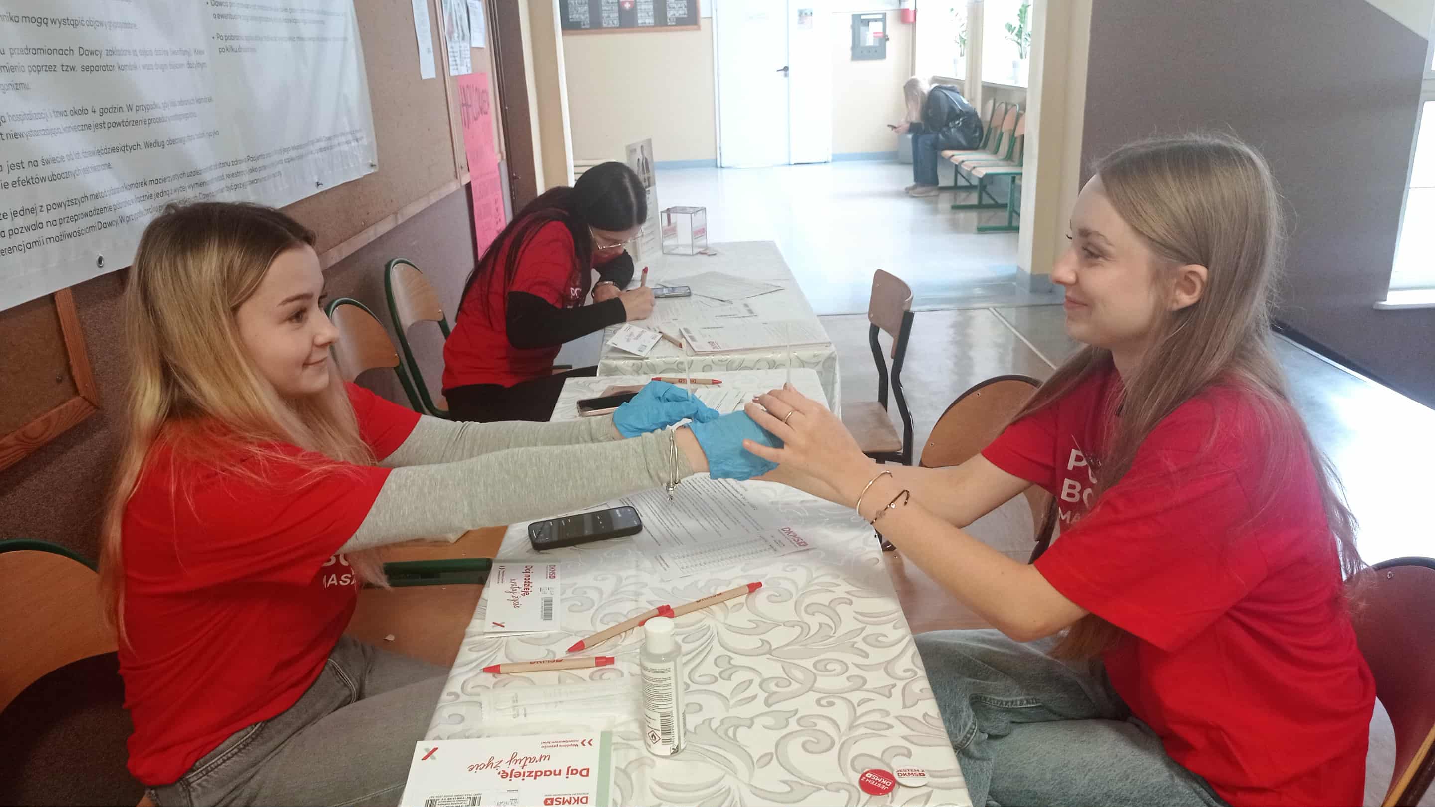 Na szkolnym korytarzu panuje poruszenie. Wolontariusze przygotowują stanowiska, rozstawiają pudełka z zestawami do poboru wymazów, sprawdzają listy, dekorują tablice. Dla nich to już tradycja, ale za każdym razem – ta sama trema, ten sam zapał.