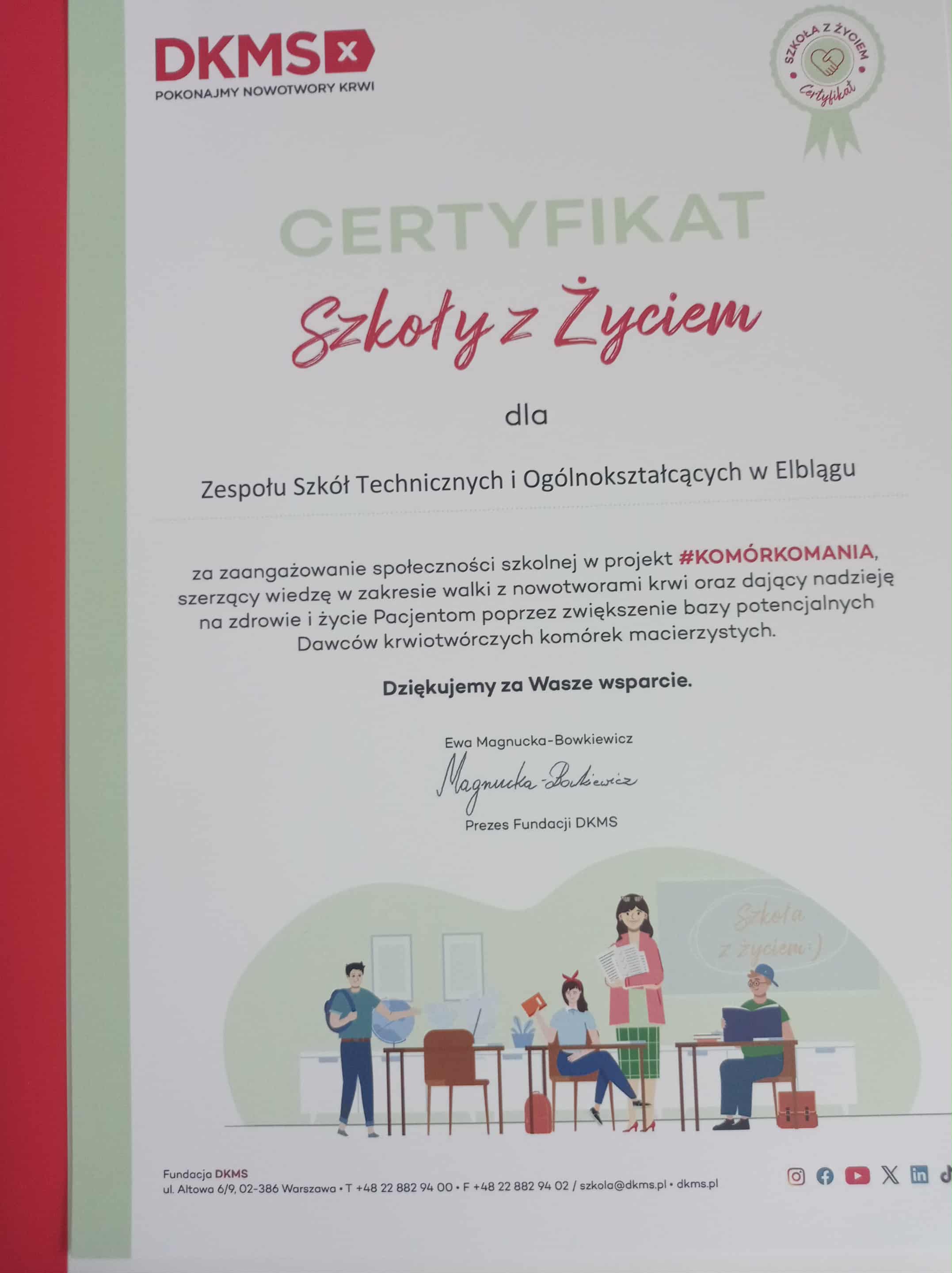 Już w środę, 29 października, od godziny 9:00, w szkole ponownie ruszy rejestracja potencjalnych dawców szpiku DKMS. To nie pierwsza taka akcja w Ekonomiku. Od lat uczniowie i nauczyciele wspólnie organizują to wydarzenie, pokazując, że młodzież potrafi działać z empatią i ogromnym zaangażowaniem.