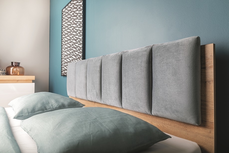 Meble w kolorze alpejskiej bieli i Dębu Riviera z kolekcji Lyon Jasny to ponadczasowe połączenie, które sprawdzi się w każdej sypialnianej aranżacji. Na szczególną uwagę zasługuje łóżko - podnoszony stelaż zapewnia mnóstwo dodatkowego miejsca do przechowywania, a tapicerowane wezgłowie nie tylko daje niezwykły komfort użytkowania, ale również jest bardzo łatwe w utrzymaniu. Wszystko za sprawą wykorzystania innowacyjnych tkanin: Easy Water Cleaning, pozwalającej na łatwe usunięcie plam oraz Water Repellent, która utrudnia wchłanianie się płynnych zabrudzeń. W zestawie oprócz łóżka znajdują się również szafki nocne oraz pojemna szafa. System dzięki bardzo modnej kolorystyce i niebanalnemu designowi nie tylko optycznie powiększa przestrzeń, ale i nadaje jej niepowtarzalnego klimatu.