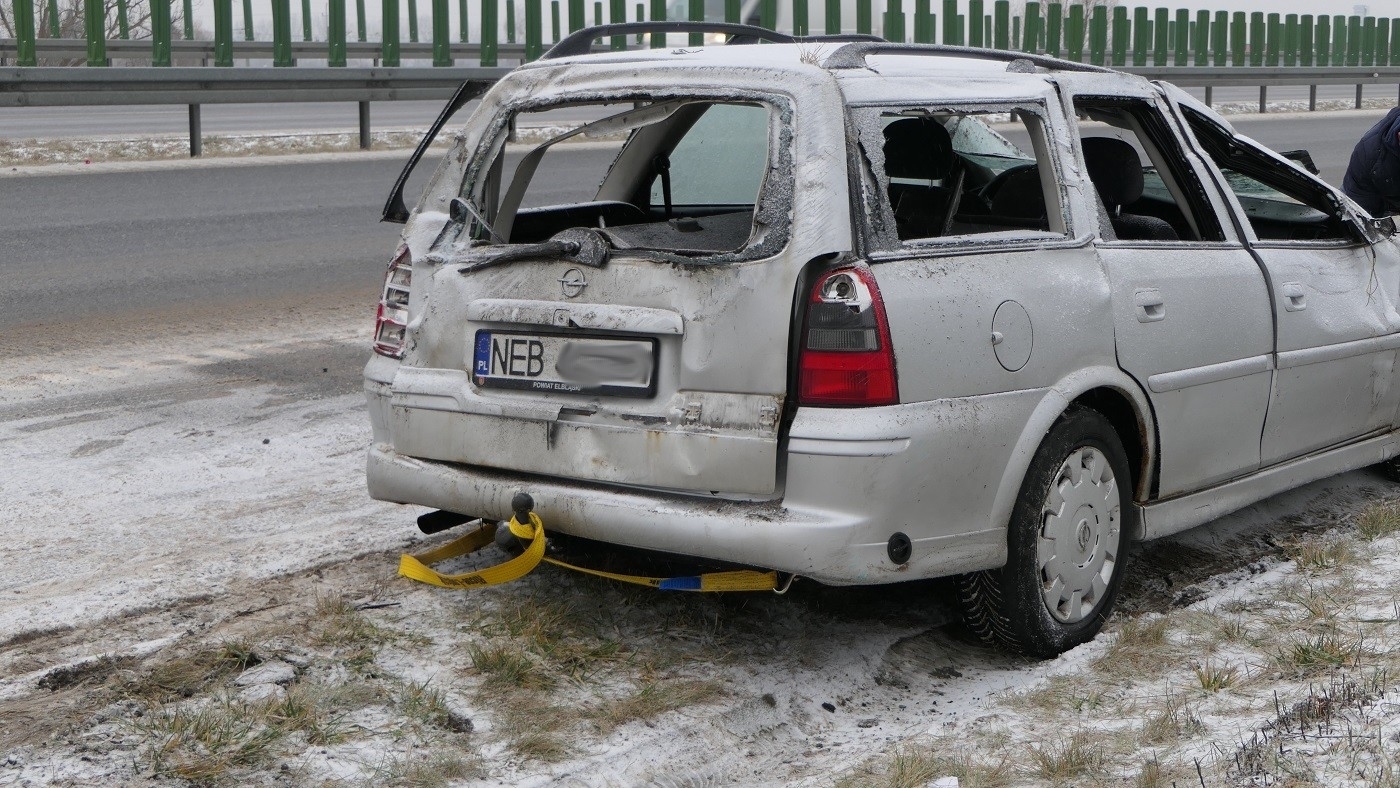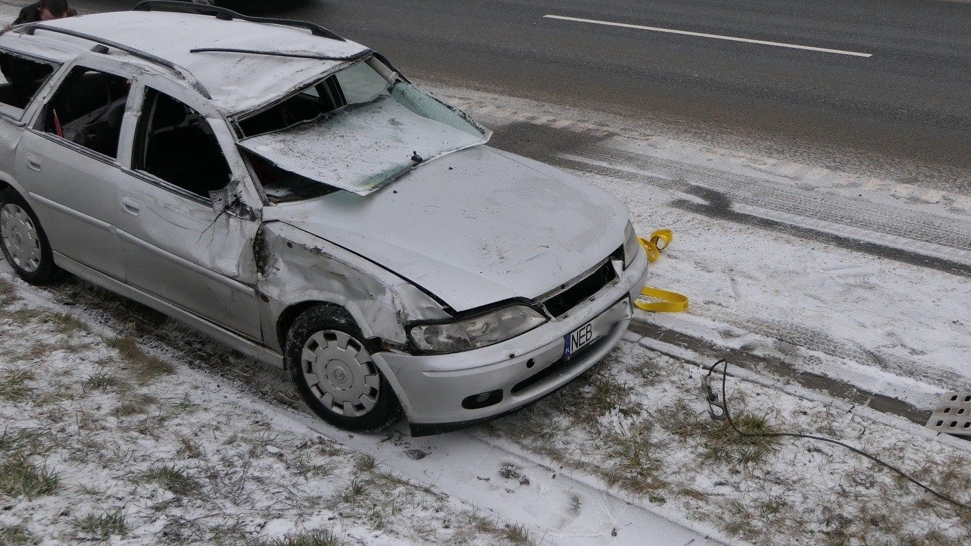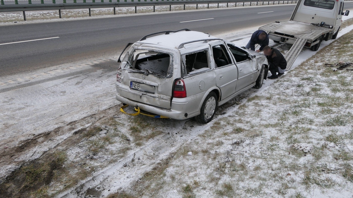 26-latka najprawdopodobniej nie dostosowała prędkości do panujących warunków na drodze w wyniku czego wpadła w poślizg i dachowała. Kobeta została zabrana do szpitala na badania.