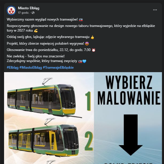 To kolejny przykład realnego włączania elblążan w podejmowanie decyzji. Wcześniej mieszkańcy wybierali m.in. wzór miejskiego muralu. Teraz mają wpływ na to, jak będzie wyglądał codzienny środek transportu, z którego korzystają tysiące osób.