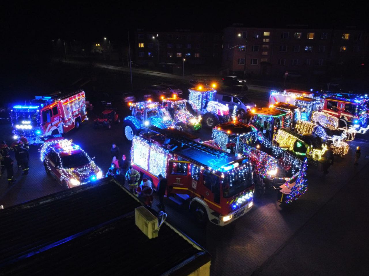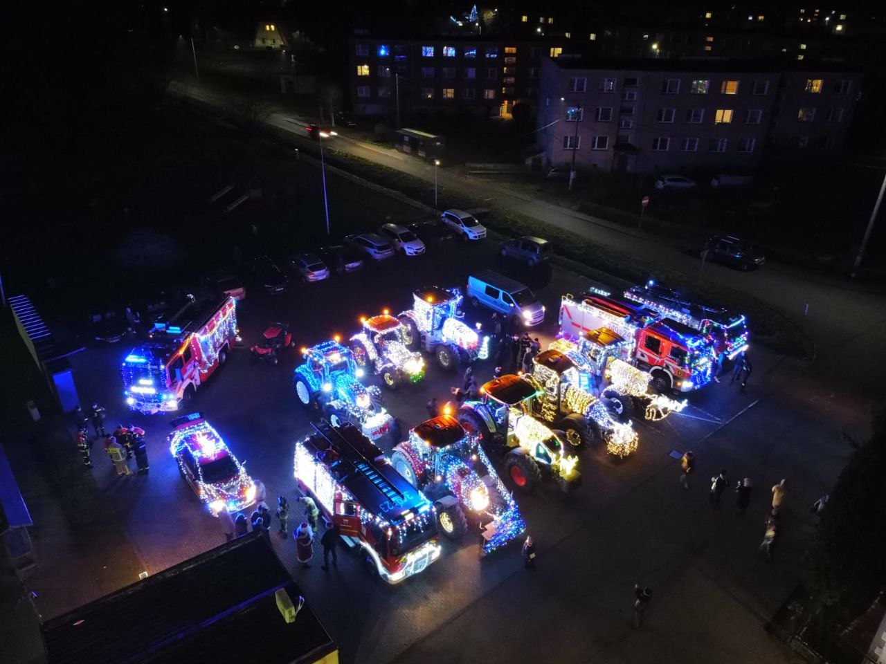 "Na zaproszenie Wójta Gronowa Elbląskiego przyjechaliśmy rozświetlonymi traktorami na wydarzenie świąteczne zorganizowane dla mieszkańców"