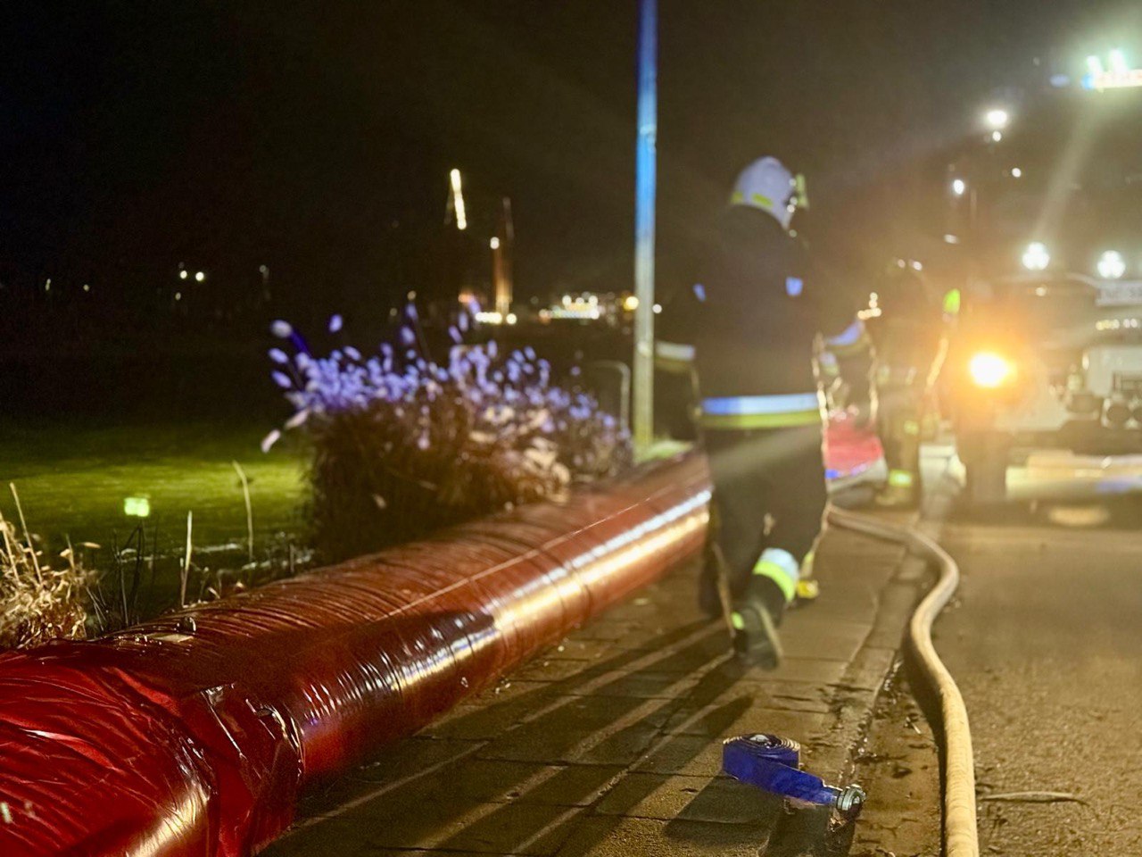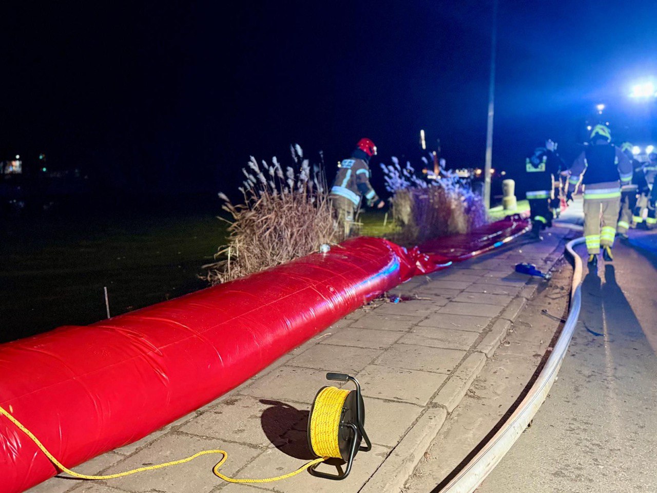 Profilaktycznie rozwijane są tam rękawy przeciwpowodziowe. To działanie zapobiegawcze, które ma ograniczyć ryzyko zalania terenów spacerowych i przyległej infrastruktury.