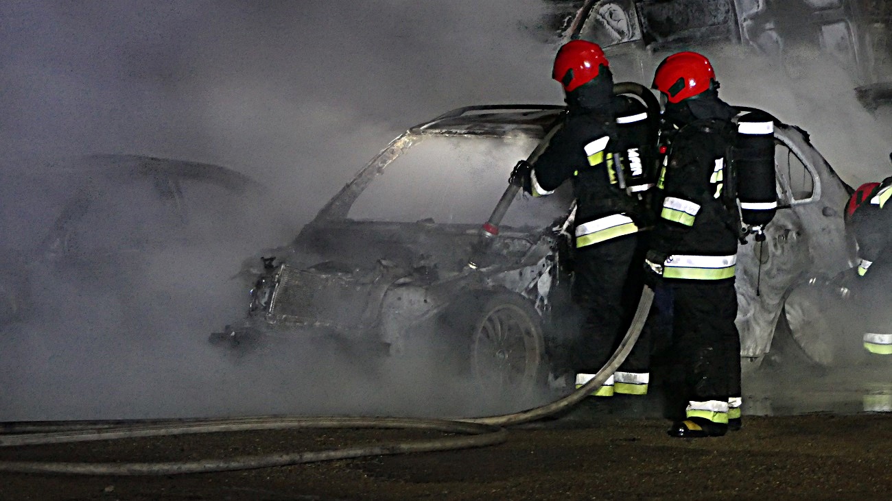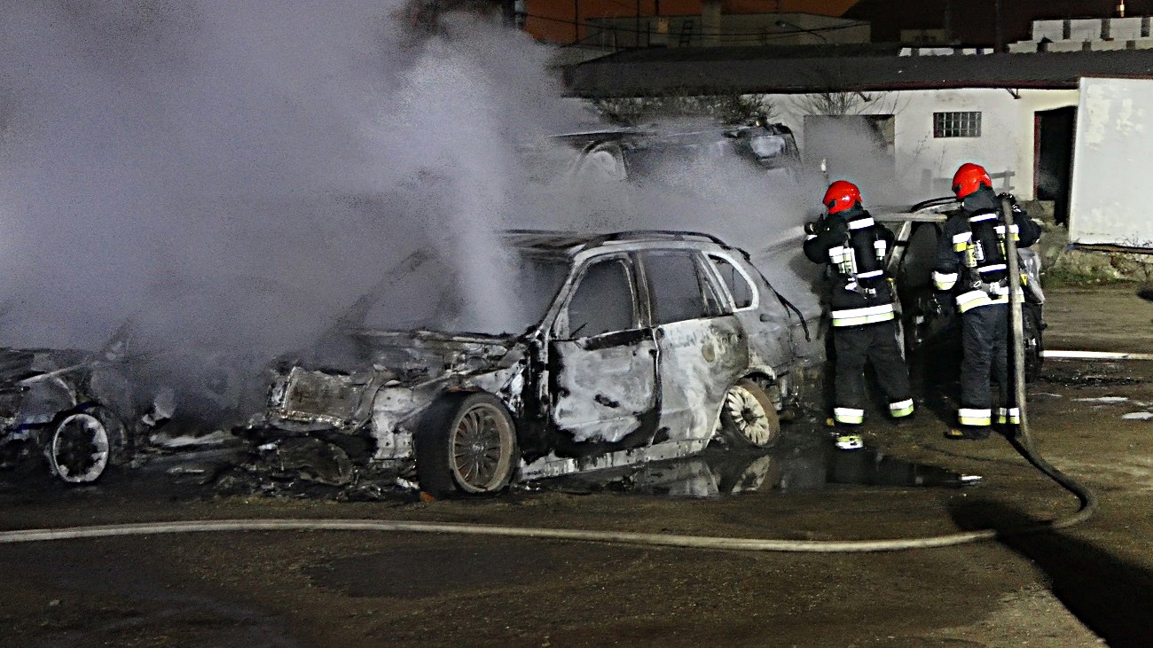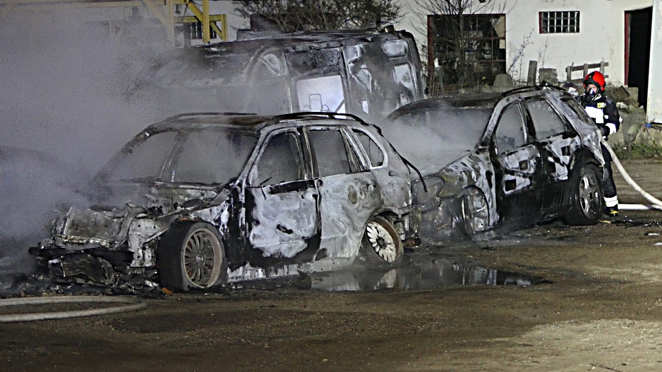 Samochody spłonęły doszczętnie, przyczyny pożaru wyjaśni policyjne dochodzenie.