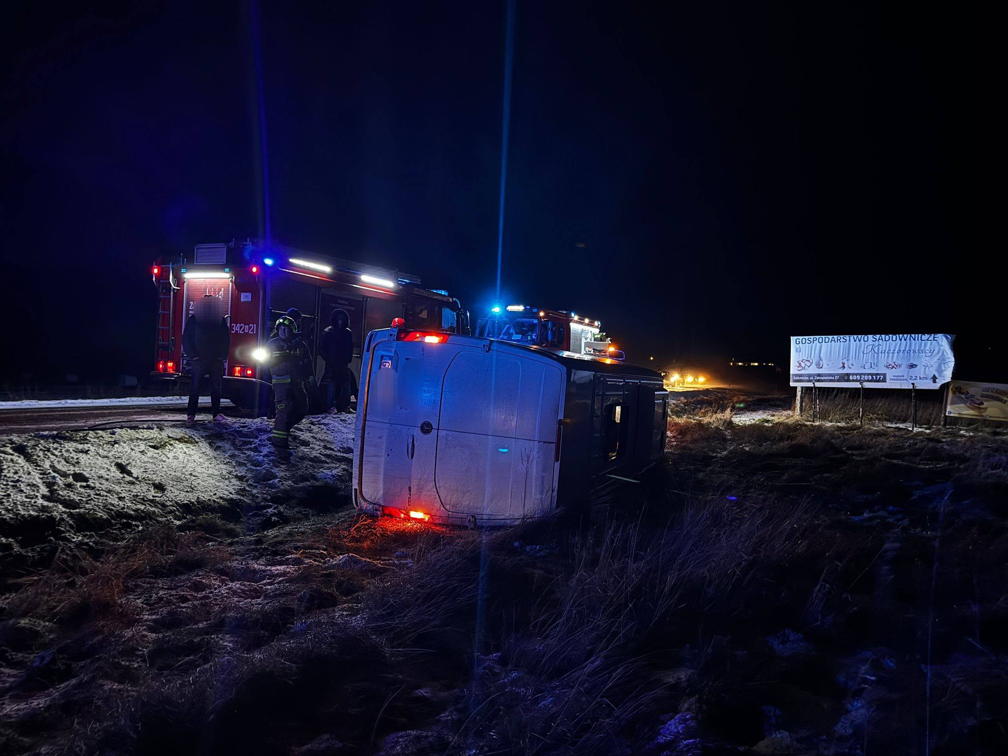 49-letni mężczyzna kierujący pojazdem nie zapanował nad nim z uwagi na silny podmuch wiatru. Zdarzenie miało miejsce na wysokości Kadyn.