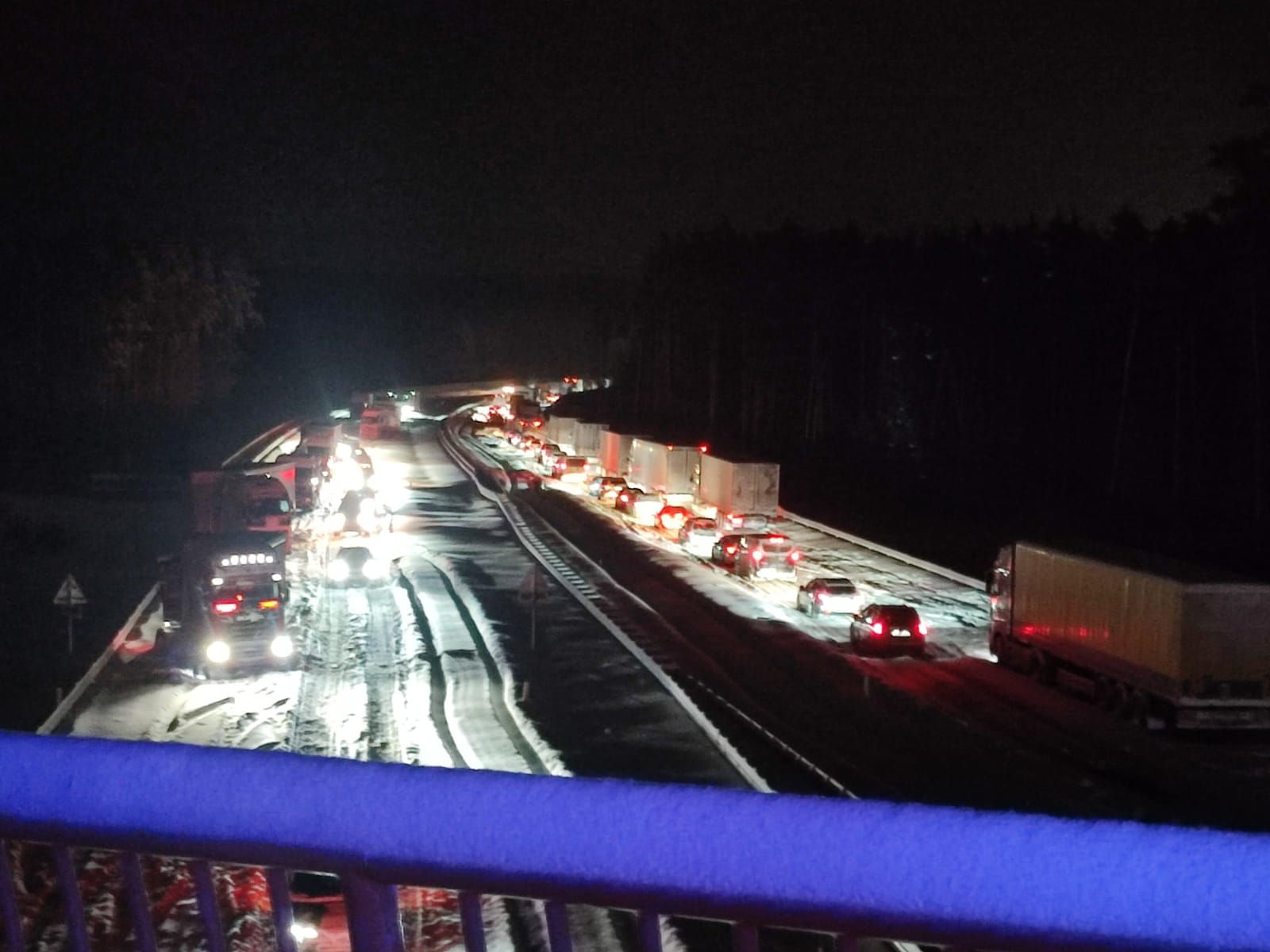 Według relacji uczestników ruchu, śnieg i wiatr tak szybko nawiewały zaspy, że jezdnia w wielu miejscach była całkowicie nieprzejezdna. Samochody osobowe i ciężarowe ugrzęzły w zaspach, blokując pasy ruchu w obu kierunkach jednocześnie. Widoczność była bardzo słaba, a warunki pogodowe skutecznie uniemożliwiały normalny przejazd.