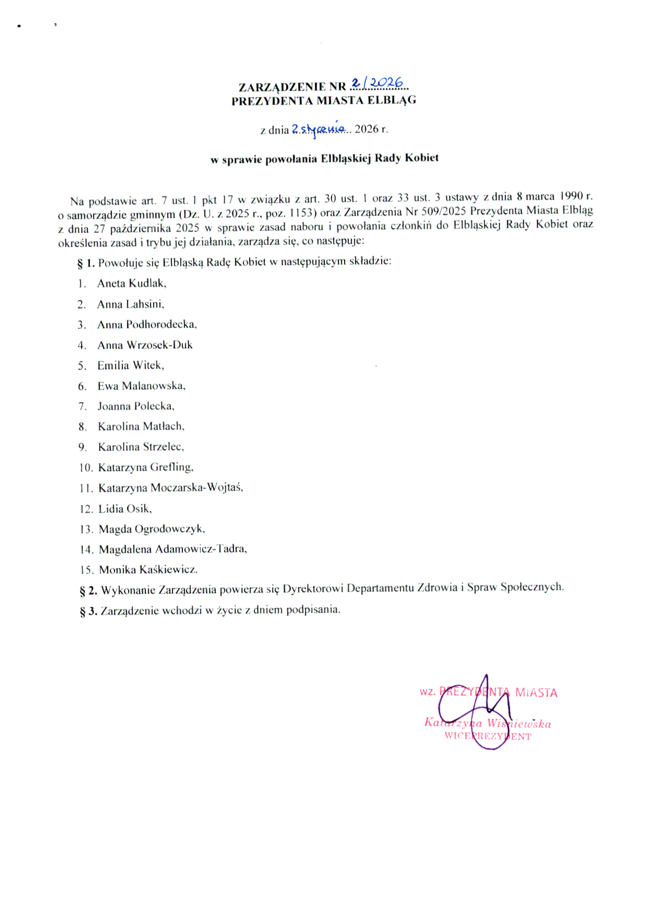 Decyzja zapadła oficjalnie. Elbląska Rada Kobiet została powołana jako organ doradczo-opiniodawczy przy prezydencie miasta. Jej celem jest wspieranie działań samorządu w obszarach równości, dialogu społecznego i spraw ważnych dla elblążanek.
