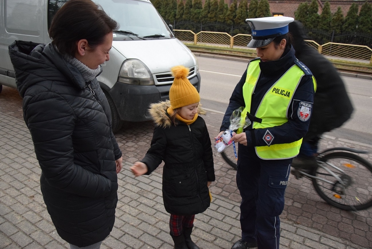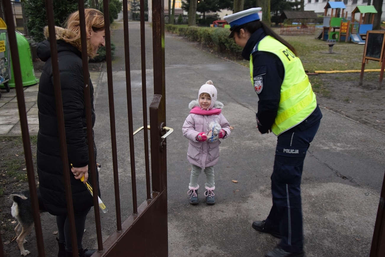 Dziś przed godziną 8.00 przy ul. Bema nieopodal przedszkola było dość nietypowo. Policjanci z ruchu drogowego sprawdzali czy dzieci są przewożone w fotelikach ochronnych. Przy okazji za przestrzeganie tych zasad bezpieczeństwa nagradzali najmłodszych… misiem ze wstążką Policja i numerem alarmowym.