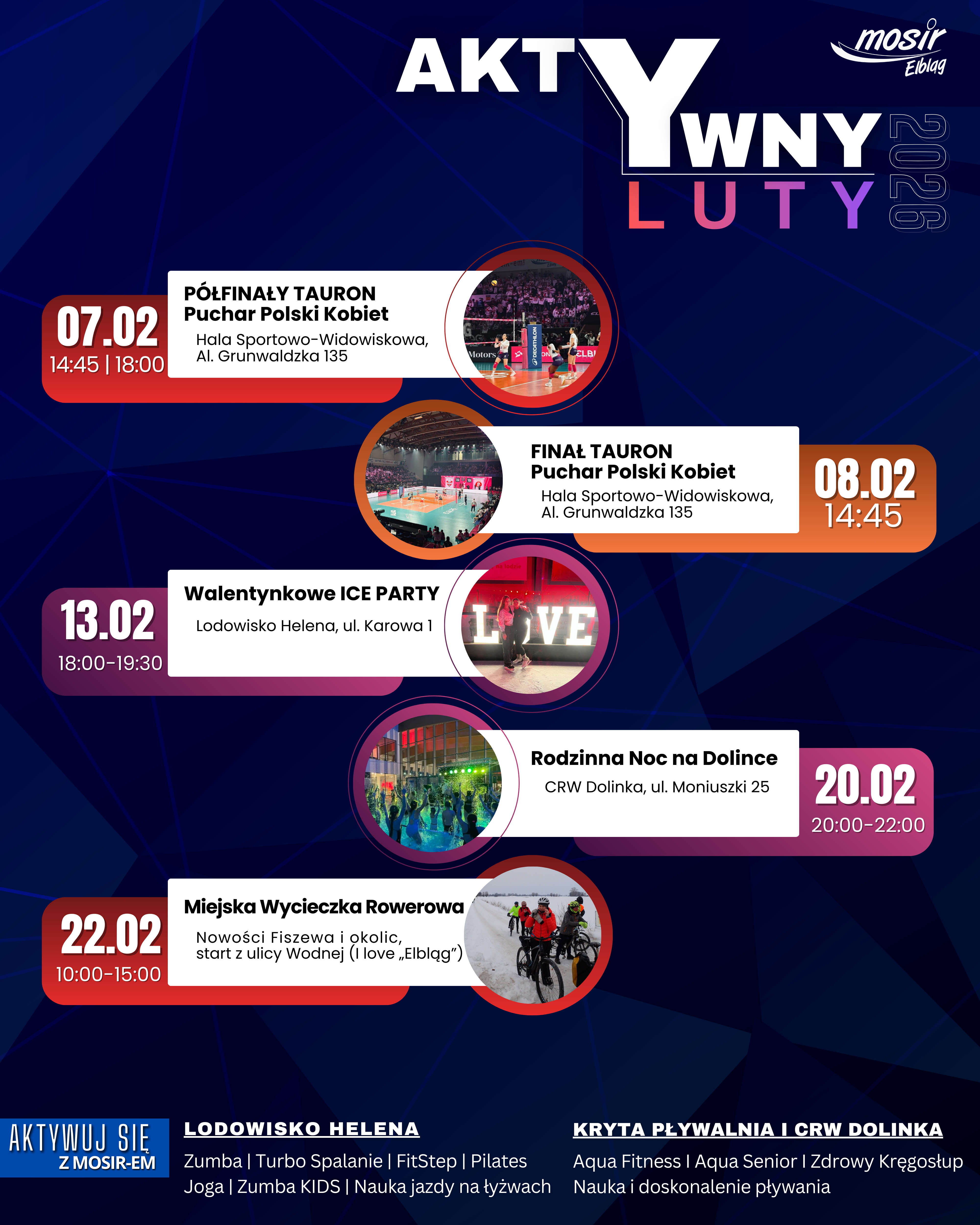 Śledź naszą stronę internetową mosir.elblag.eu oraz media społecznościowe, aby być na bieżąco ze wszystkimi imprezami sportowo-rekreacyjnymi.