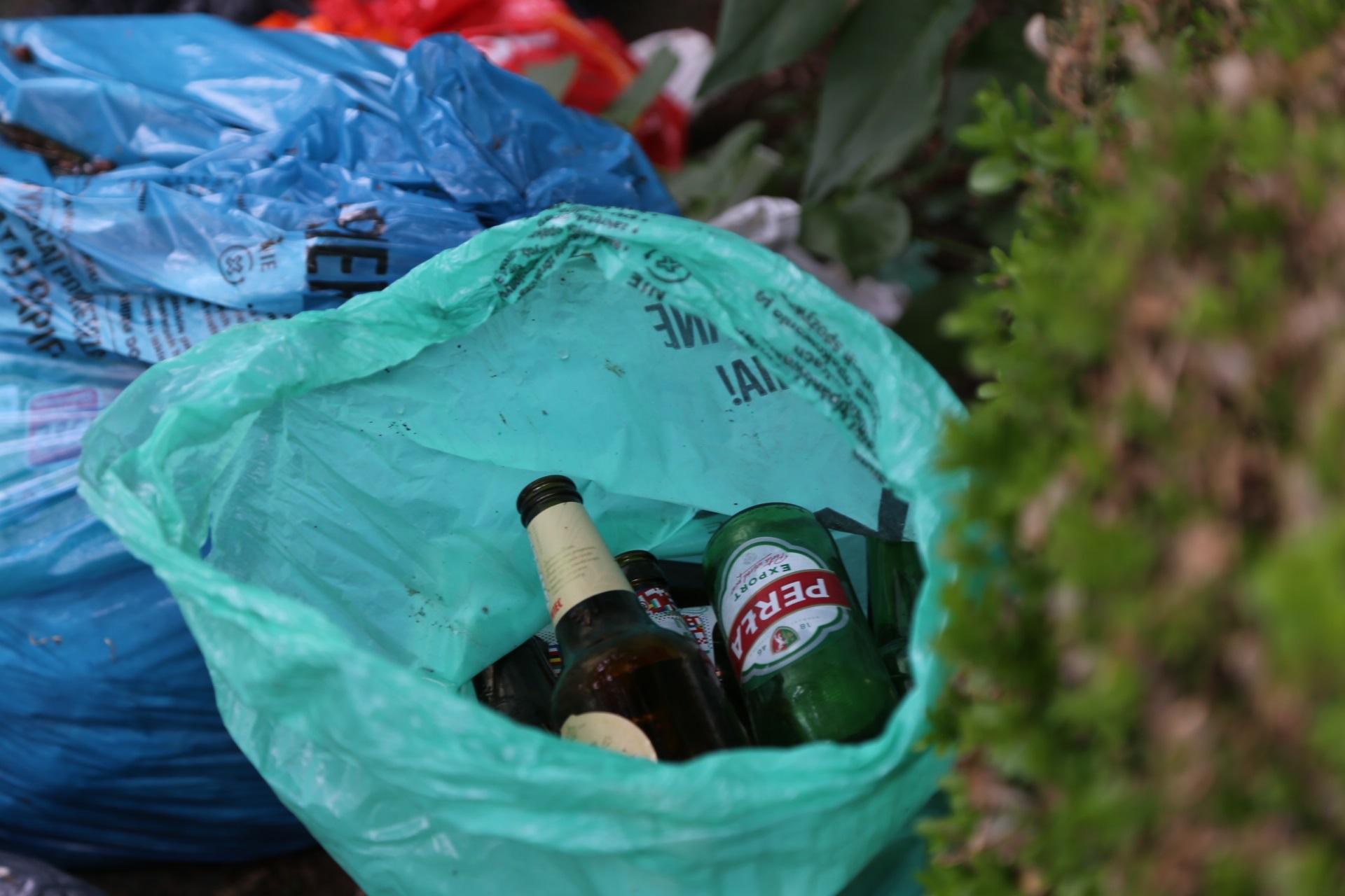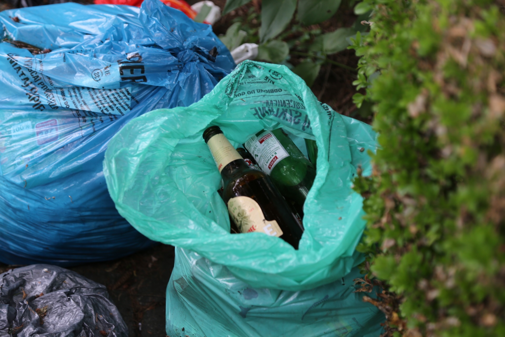 Po wejściu na posiadłość, po prawej w śmieciach znaleźliśmy cały worek wypełniony pustymi butelkami po piwie, prezes fundacji "Dumni z Elbląga", później pytany o to, nie potrafił racjonalnie odpowiedzieć na pytanie skąd się wzięły.