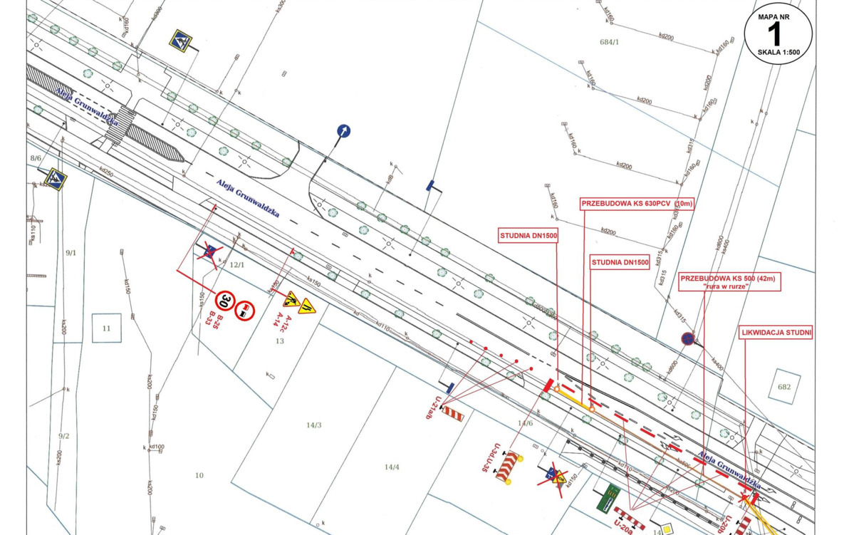 W związku z powyższym wprowadzona zostanie zmiana organizacji ruchu na Al. Grunwaldzkiej zgodnie z zatwierdzonym projektem czasowej organizacji ruchu.