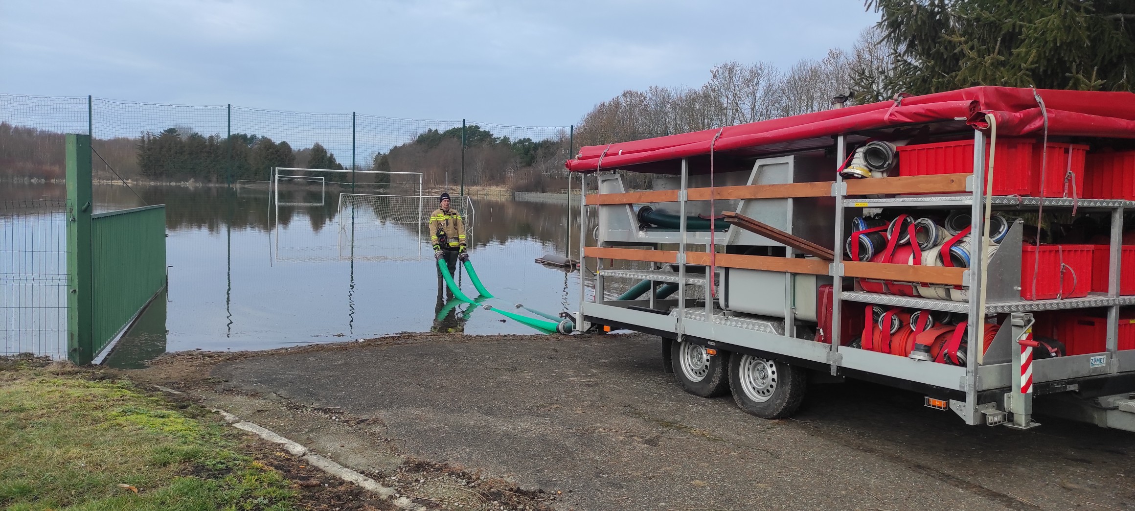 Do wypompowywania wody wykorzystywany jest specjalistyczny agregat pompowy do wody brudnej, będący na wyposażeniu Jednostki Ratowniczo-Gaśniczej PSP w Braniewie. Sprzęt pozwala na skuteczne usuwanie dużych ilości wody z zalanych terenów.