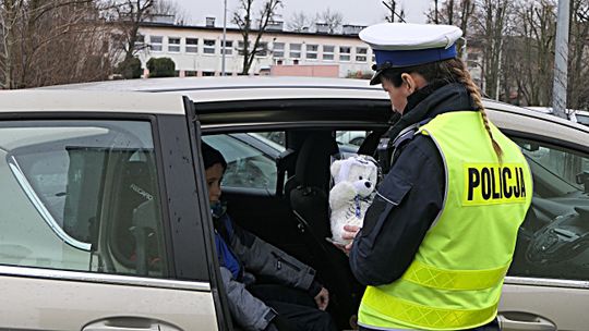 -" Policjanci z ruchu drogowego sprawdzali czy dzieci są przewożone w fotelikach ochronnych. Przy okazji za przestrzeganie tych zasad bezpieczeństwa nagradzali najmłodszych… misiem ze wstążką Policja i numerem alarmowym."