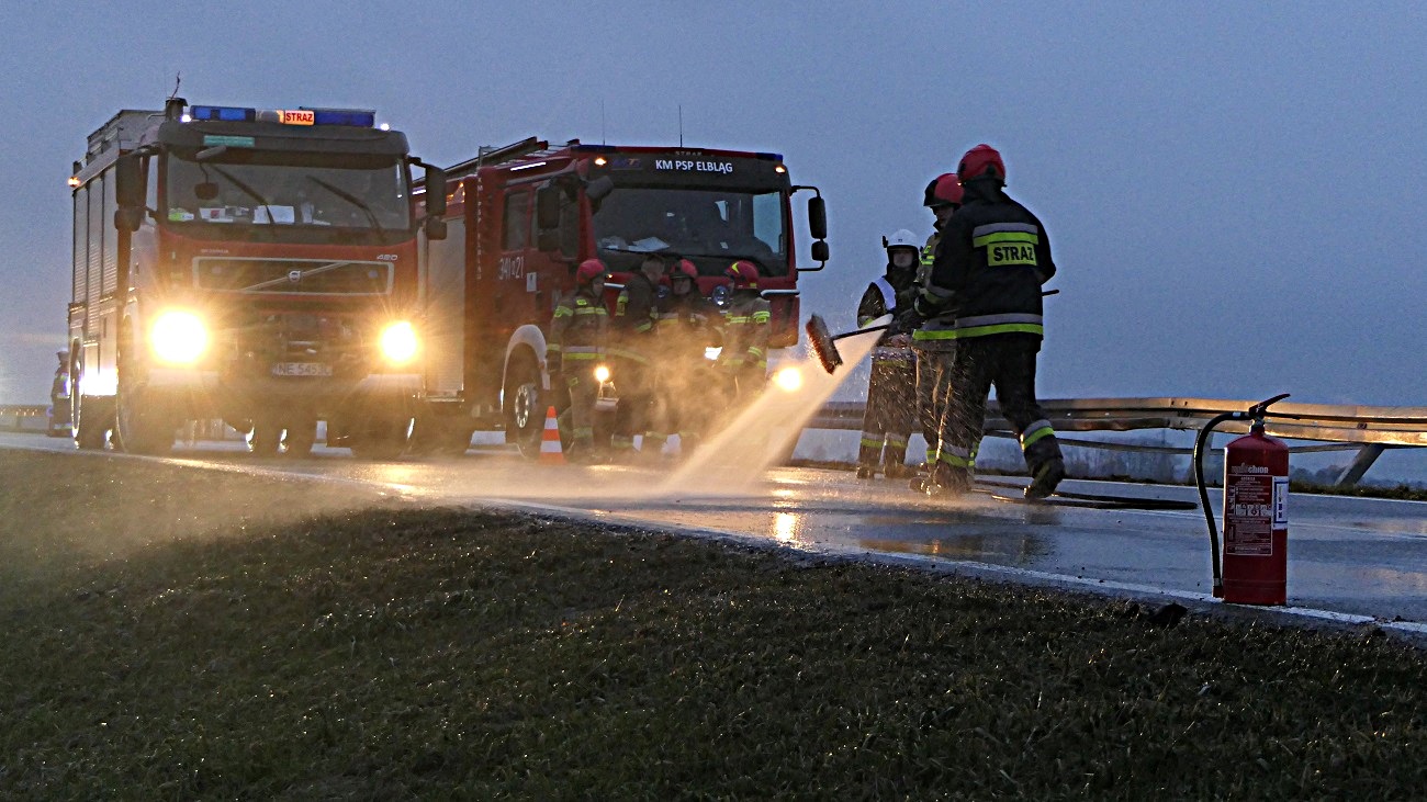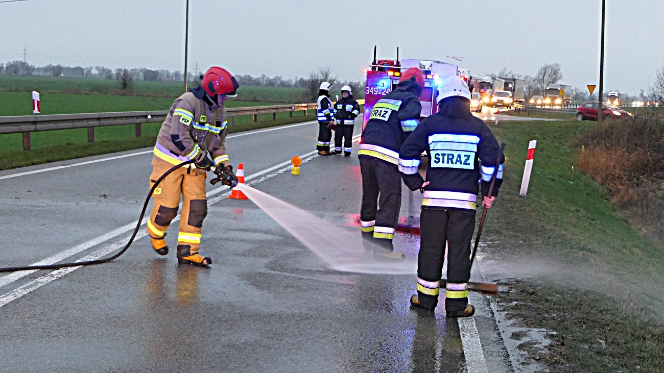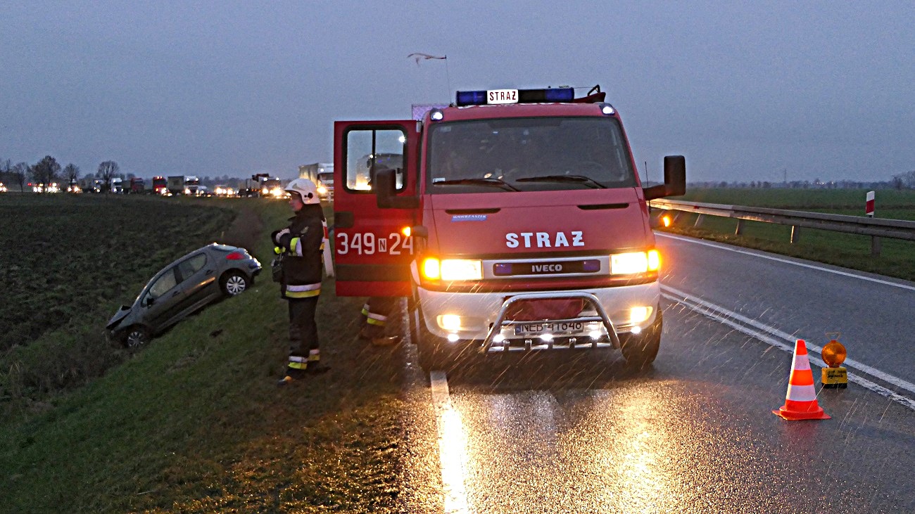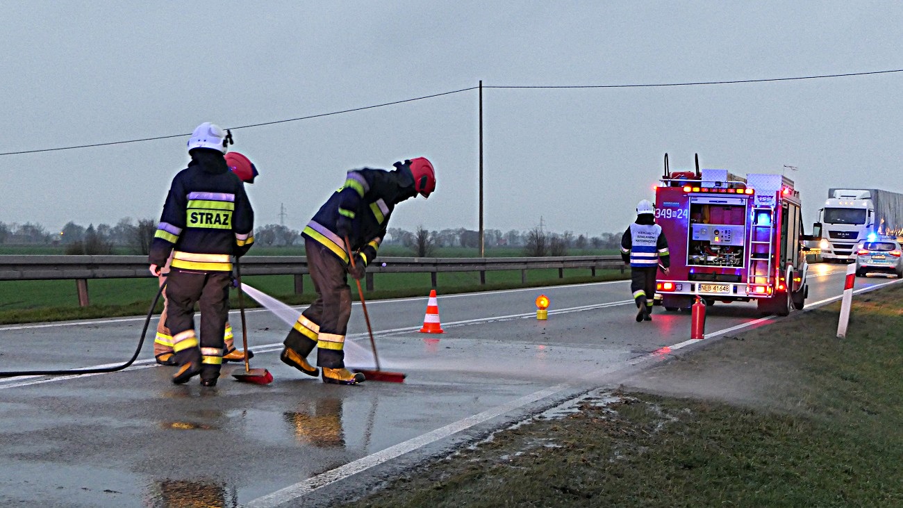 Na miejsce zdarzenia przyjechała drogówka, straż pożarna oraz strażacy z Ochotniczej Straży Pożarnej w Jegłowniku.