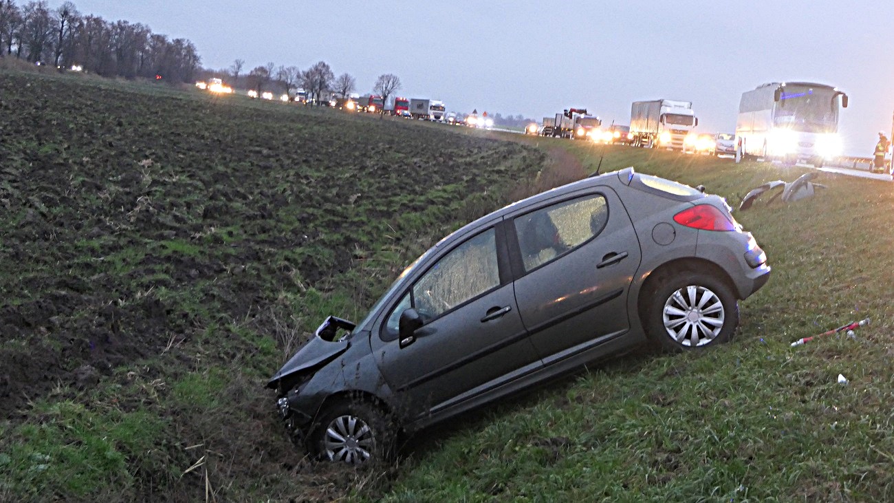 Z ustaleń elbląskiej drogówki wynika, że 33-letnia kobieta jechała pojazdem marki peugeot z Elbląga w kierunku Malborka, na łuku drogi, na podwójnej ciągłej rozpoczęła manewr wyprzedzania, kiedy zobaczyła, że z naprzeciwka jedzie samochód uderzyła w barierki, następnie straciła panowanie nad pojazdem i wjechała do rowu.
