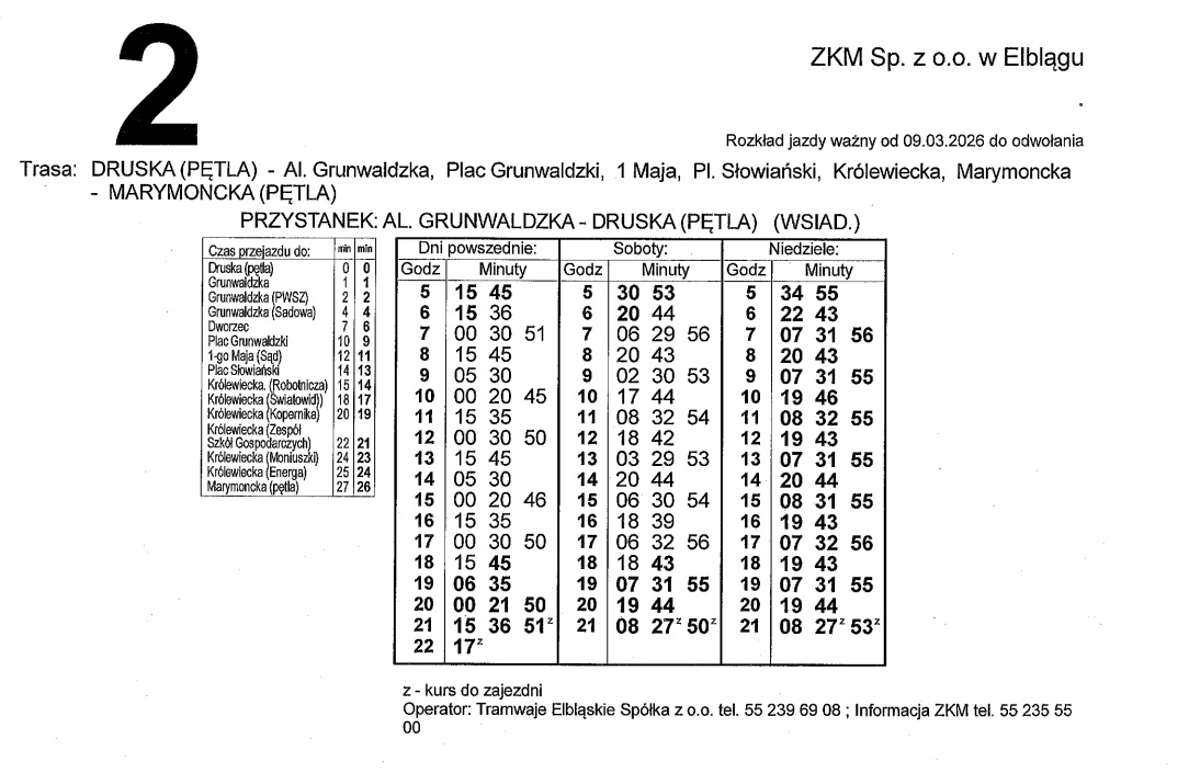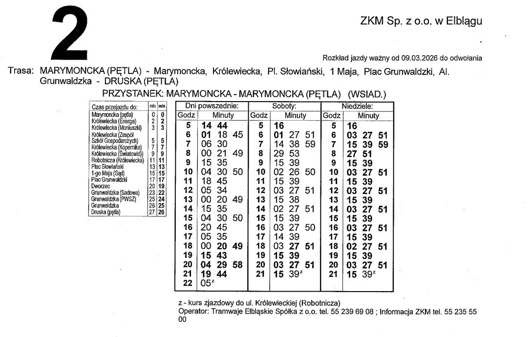 Rozkład jazdy dla linii nr 2