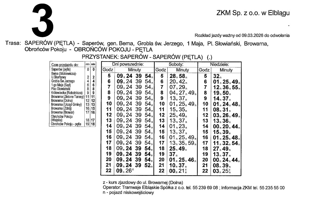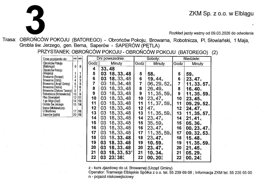 Rozkład jazdy dla linii nr 3