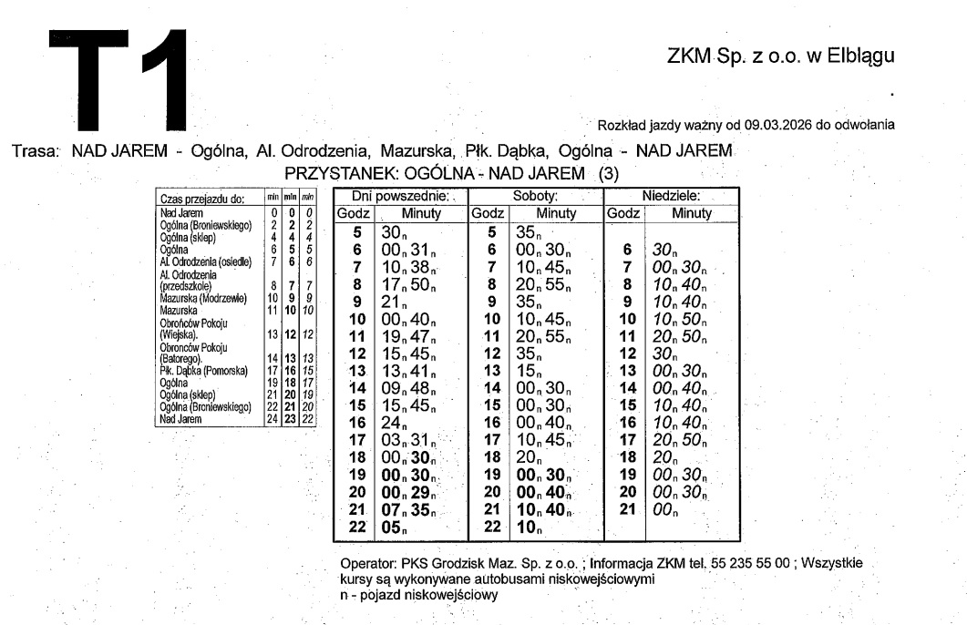 Rozkład jazdy dla linii T1