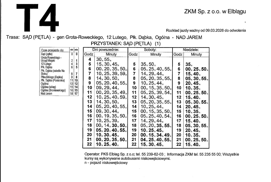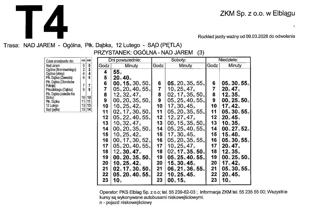 Rozkład jazdy dla linii T4